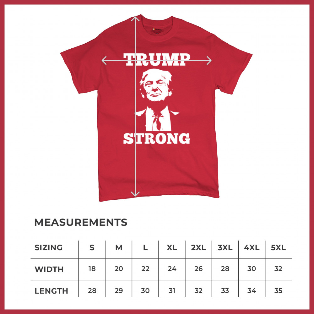 Show your support with 'Trump Strong' gear—a powerful emblem for Trump advocates and America-first believers. Stand proud and unyielding.