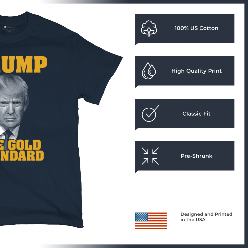 Elevate your style with our 'Trump The Gold Standard' design. Symbolizing excellence and unwavering commitment, it's a must-have for every Trump supporter. Join the rebelution and declare your allegiance to America first.