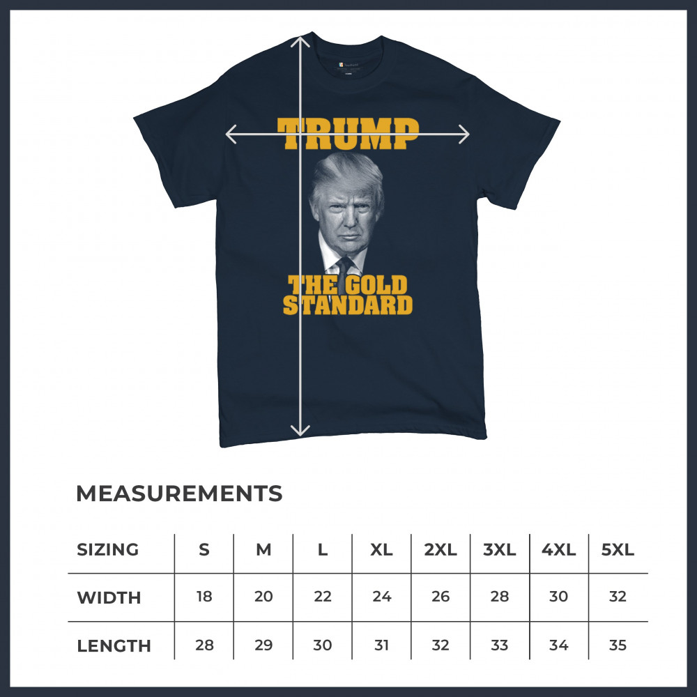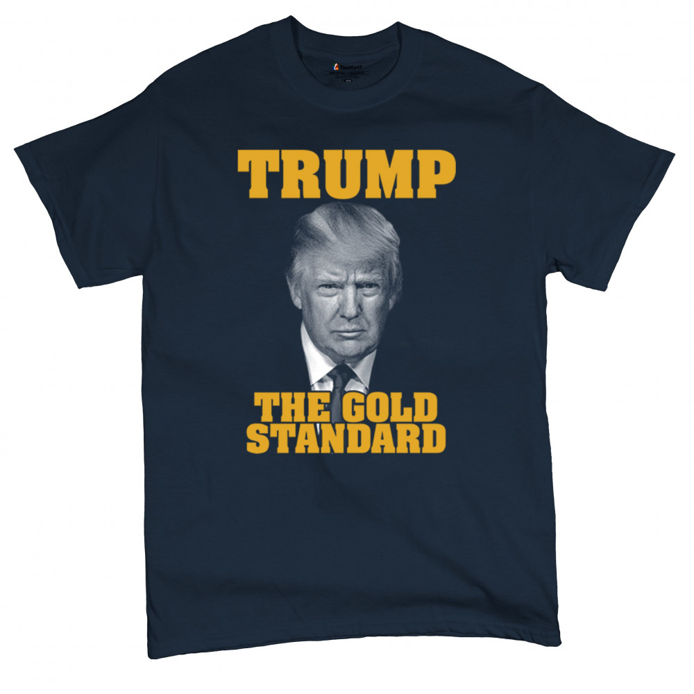 Stand tall with our striking 'Trump The Gold Standard' design, representing the pinnacle of American leadership and excellence. Show your unwavering support as a dedicated Trump supporter and conservative patriot. Ride the victory train towards a brighter future, rallying under the American flag. Trust in God, not in the deceitful government, and let your apparel reflect your commitment to the Republican cause. Join the rebelution against traitors and refuse to surrender to the forces of tyranny. Wear it proudly and declare your allegiance to America first.