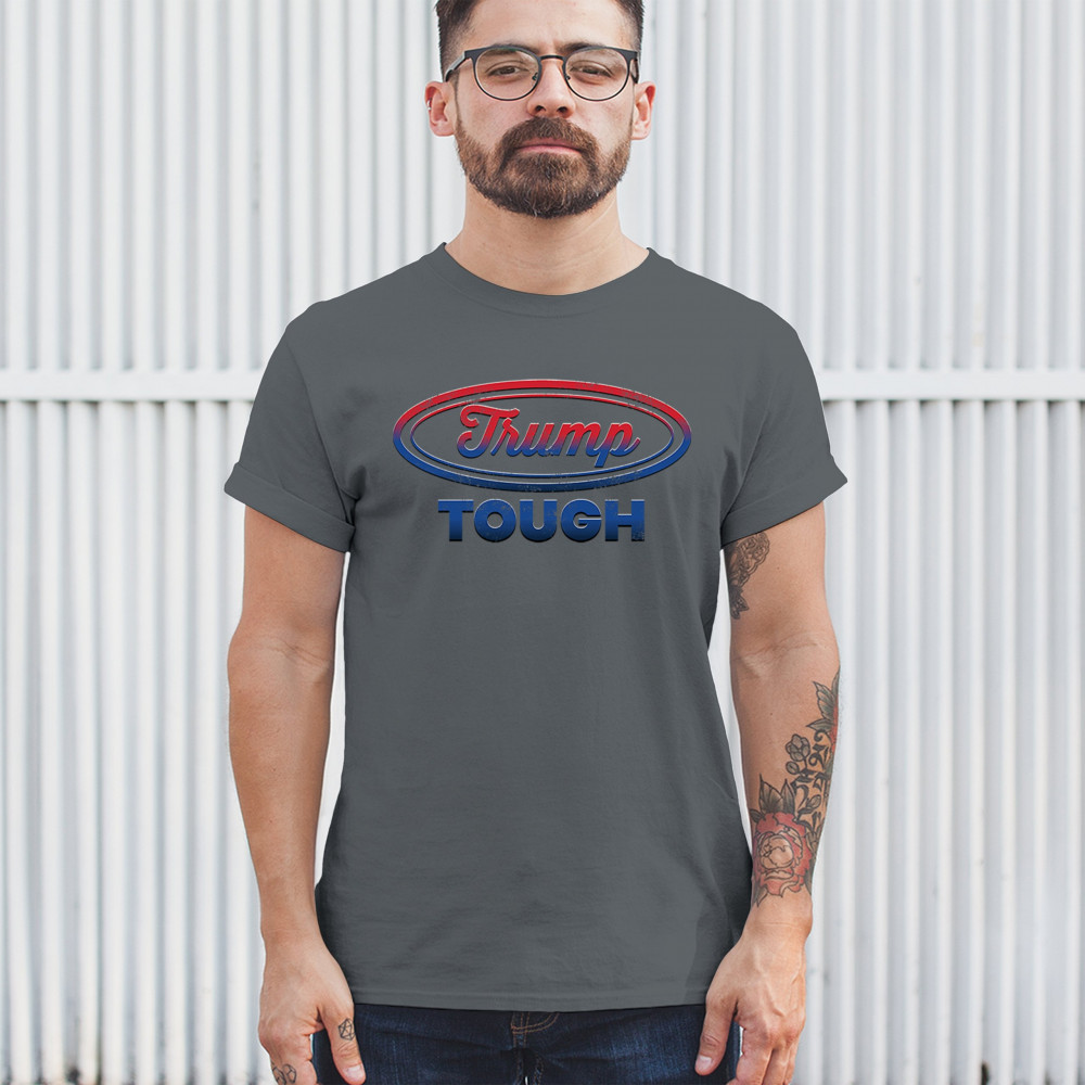 Embrace the "Trump Tough" spirit—show your support for conservative values, America first, and the American flag. Perfect for rallies or daily wear.