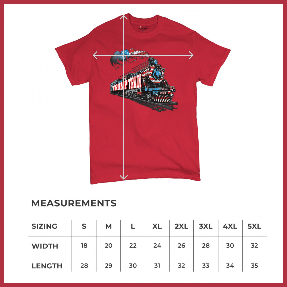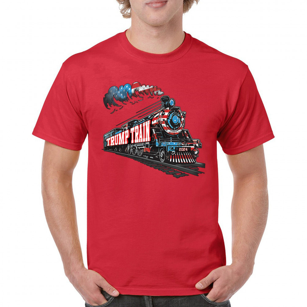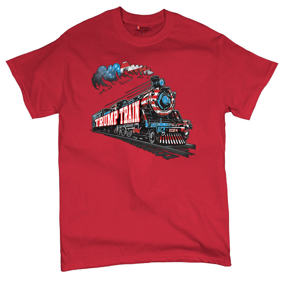 Hop on the Trump Train and support America First! This bold, patriotic tee is perfect for Republicans, conservatives, and the Red Wave movement.