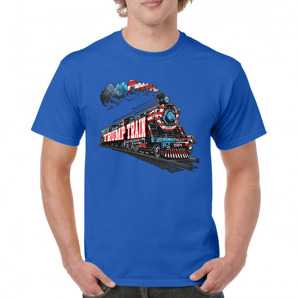 Hop on the Trump Train and support America First! This bold, patriotic tee is perfect for Republicans, conservatives, and the Red Wave movement.