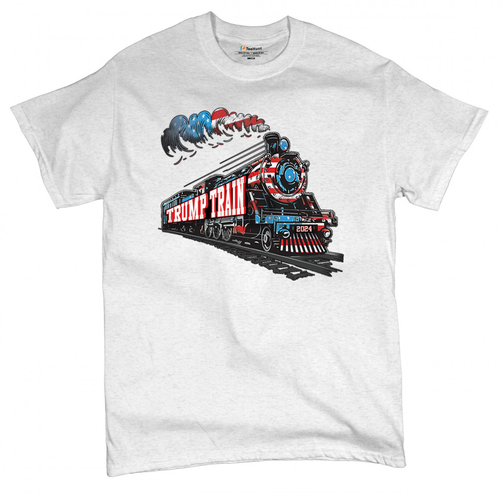 Hop on the Trump Train and support America First! This bold, patriotic tee is perfect for Republicans, conservatives, and the Red Wave movement.