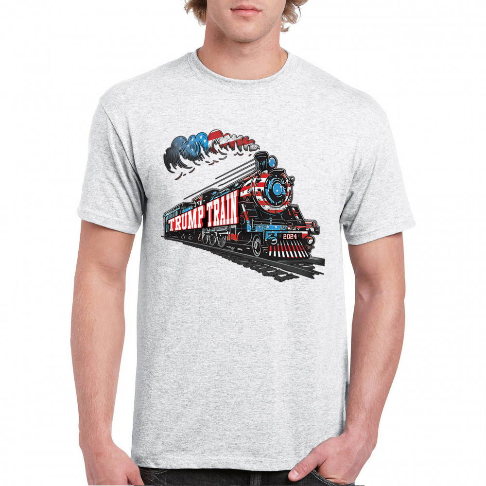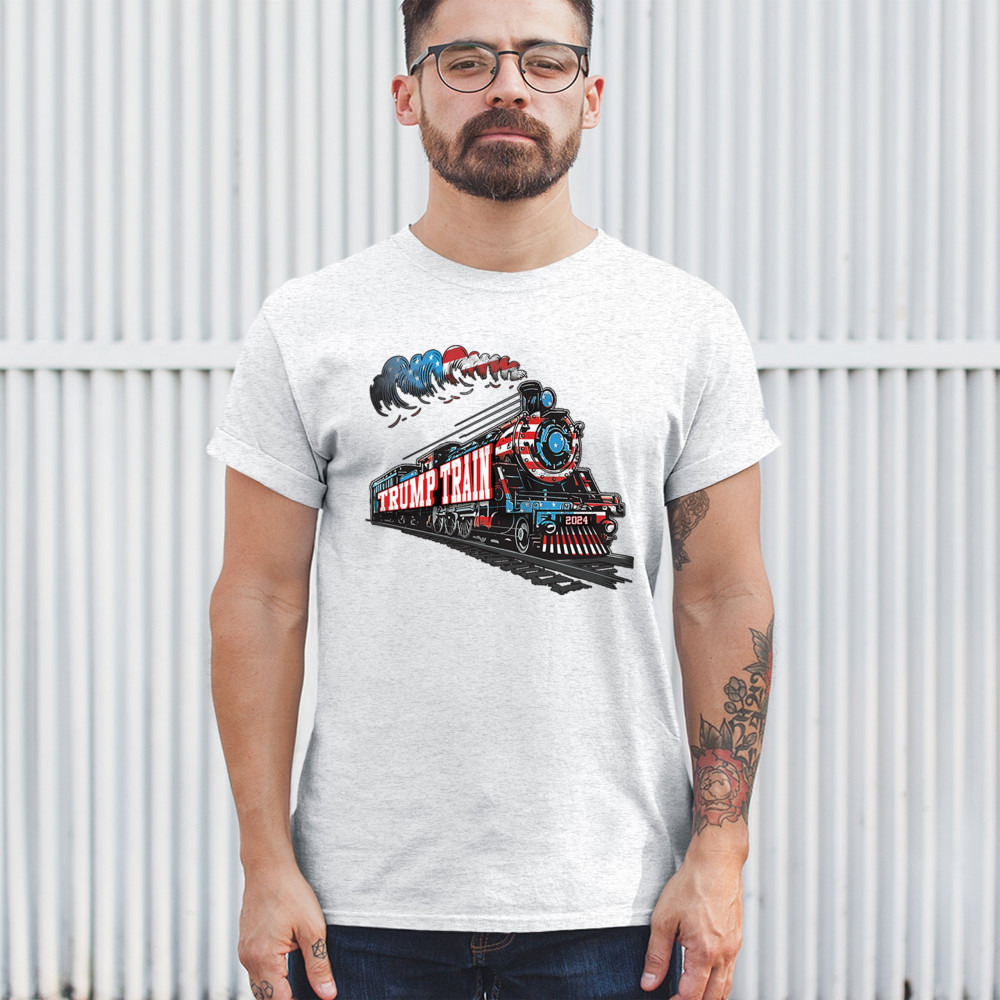 Celebrate the Trump Train with this bold, patriotic design. Featuring a steam engine wrapped in the American flag, this tee is perfect for Trump supporters and conservatives looking to make a statement. Join the Red Wave, fight for victory, and showcase your support for the 47th President. Whether at rallies or casual events, this design represents we the people have spoken and the push for 4 More Years.