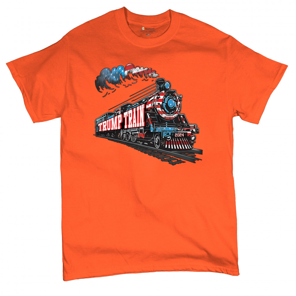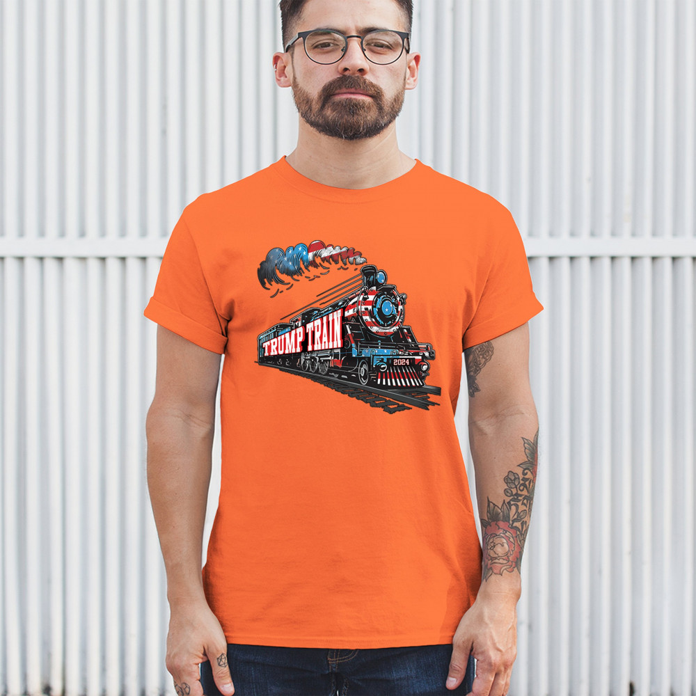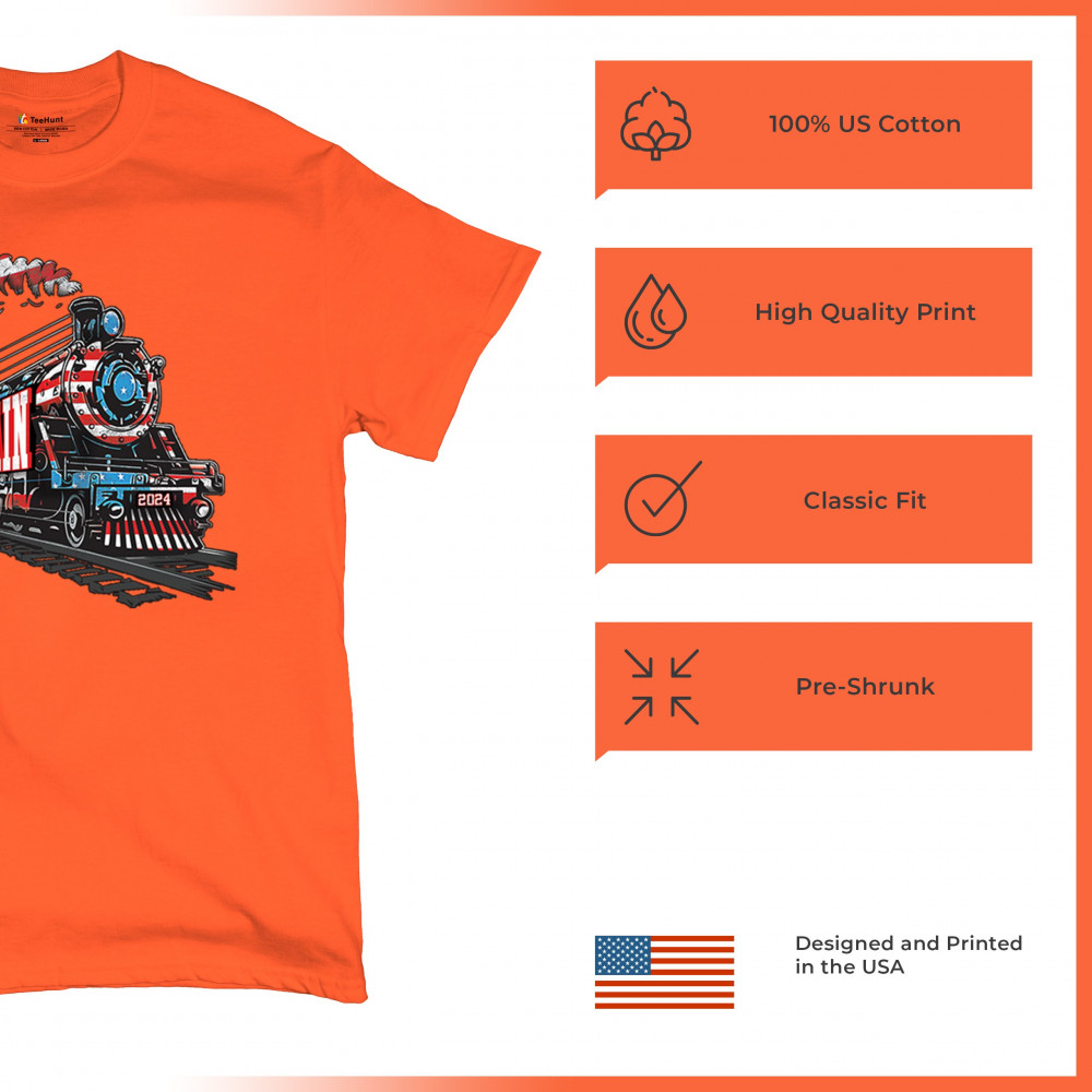 Celebrate the Trump Train with this bold, patriotic design. Featuring a steam engine wrapped in the American flag, this tee is perfect for Trump supporters and conservatives looking to make a statement. Join the Red Wave, fight for victory, and showcase your support for the 47th President. Whether at rallies or casual events, this design represents we the people have spoken and the push for 4 More Years.