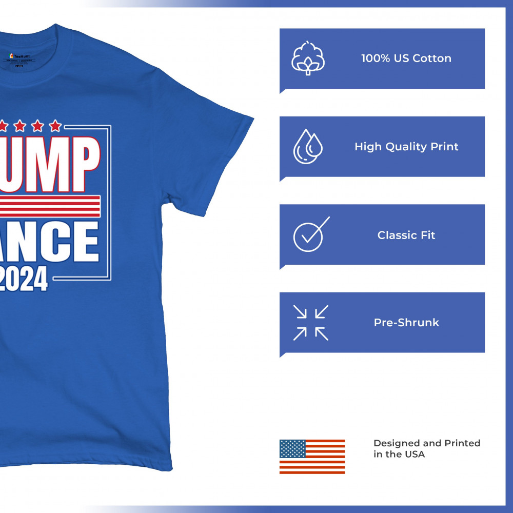 Show your support for Trump-Vance 2024 with this bold design. Perfect for rallies and everyday wear, it represents resilience and strong leadership.