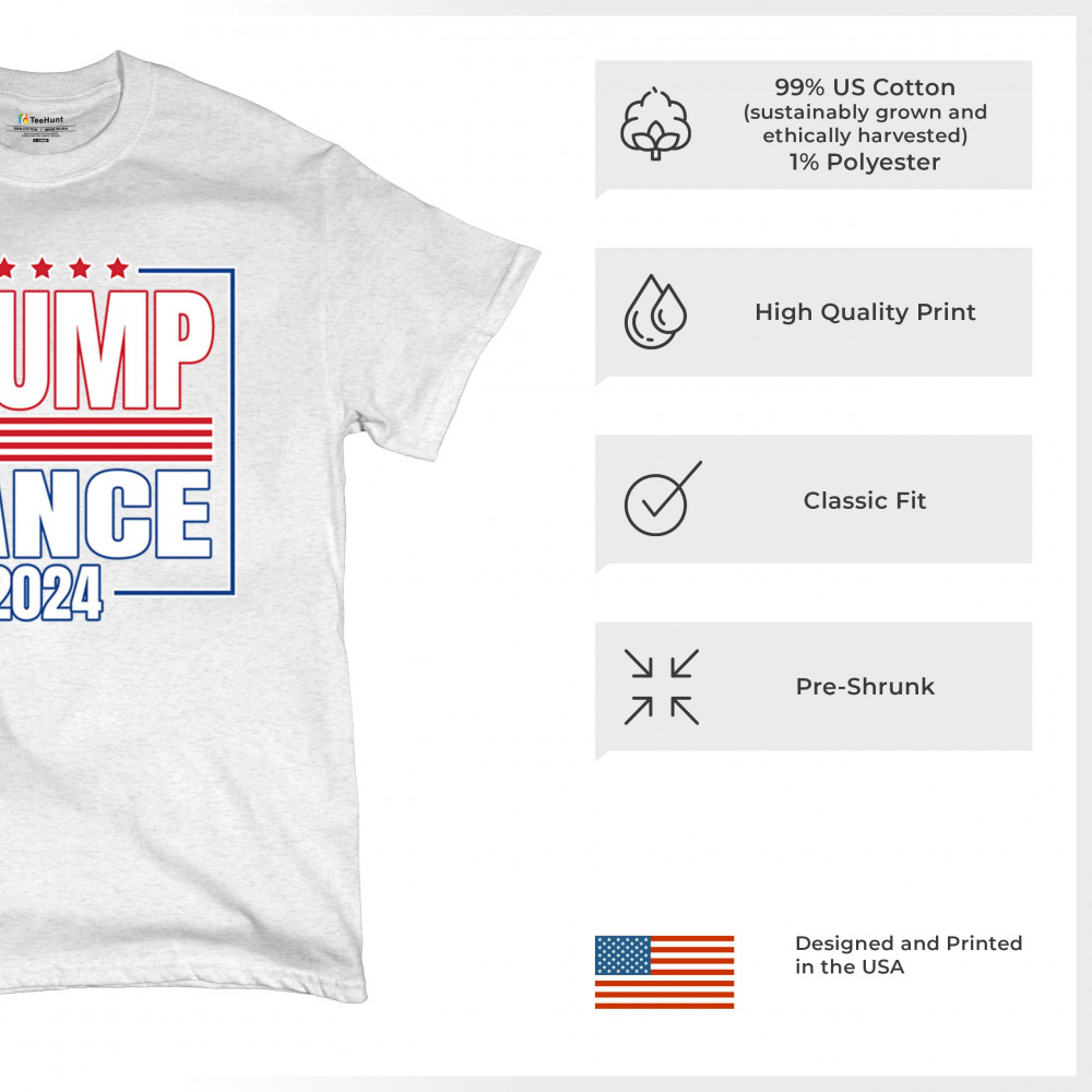 Show your support for Trump-Vance 2024 with this bold design. Perfect for rallies and everyday wear, it represents resilience and strong leadership.
