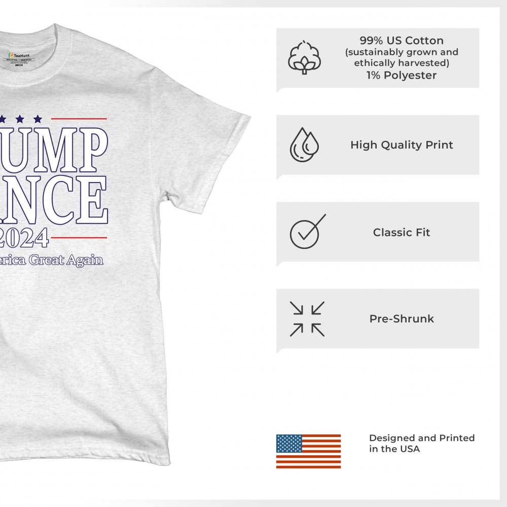 Show your support with the "Trump Vance 2024" design, perfect for rallies and patriotic events. Express your conservative values with pride.