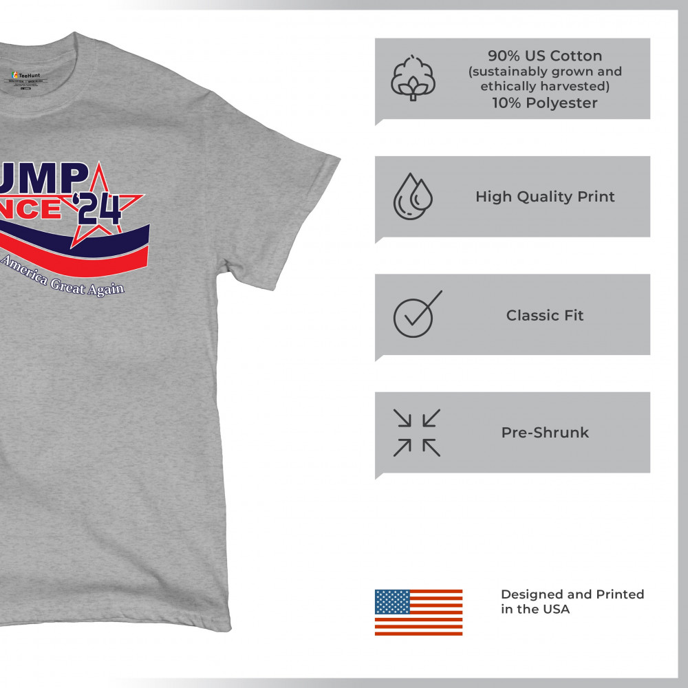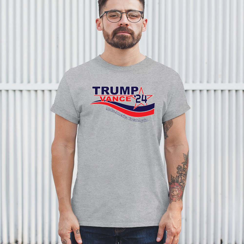 Show your support for Trump-Vance 2024 with this bold design featuring "Make America Great Again." Perfect for rallies and patriotic events.