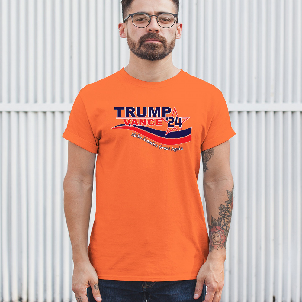 Show your support for Trump-Vance 2024 with this bold design featuring "Make America Great Again." Perfect for rallies and patriotic events.