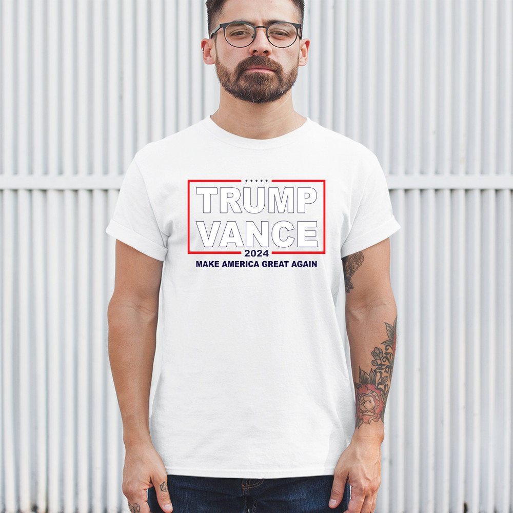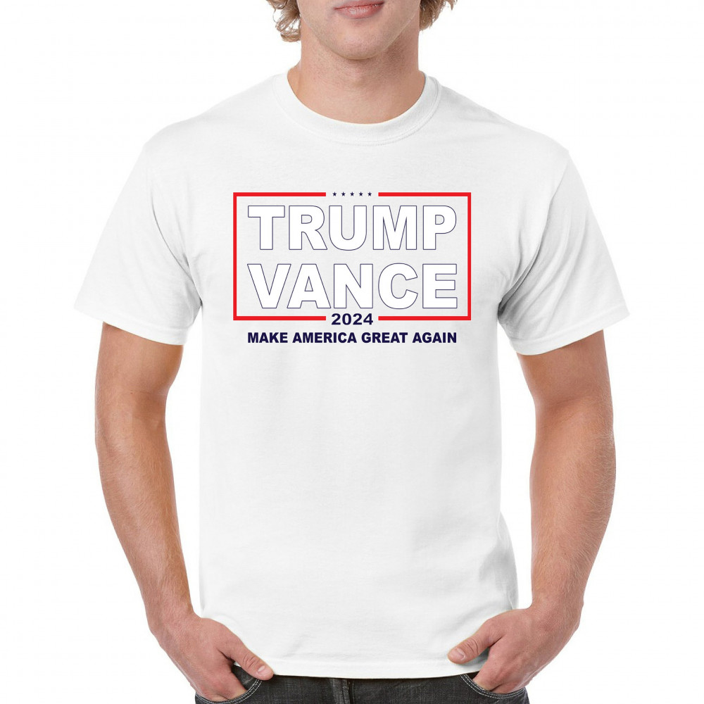 Showcase your support for the Trump-Vance 2024 campaign with this eye-catching design. Emblazoned with the "Make America Great Again" slogan, this artwork is perfect for conservative rallies, political gatherings, or simply expressing your political views. The striking red, white, and blue colors highlight your American pride and dedication to the conservative movement. Comfortable and stylish, this design is a great addition to any wardrobe, allowing you to stand out and make a statement wherever you go.