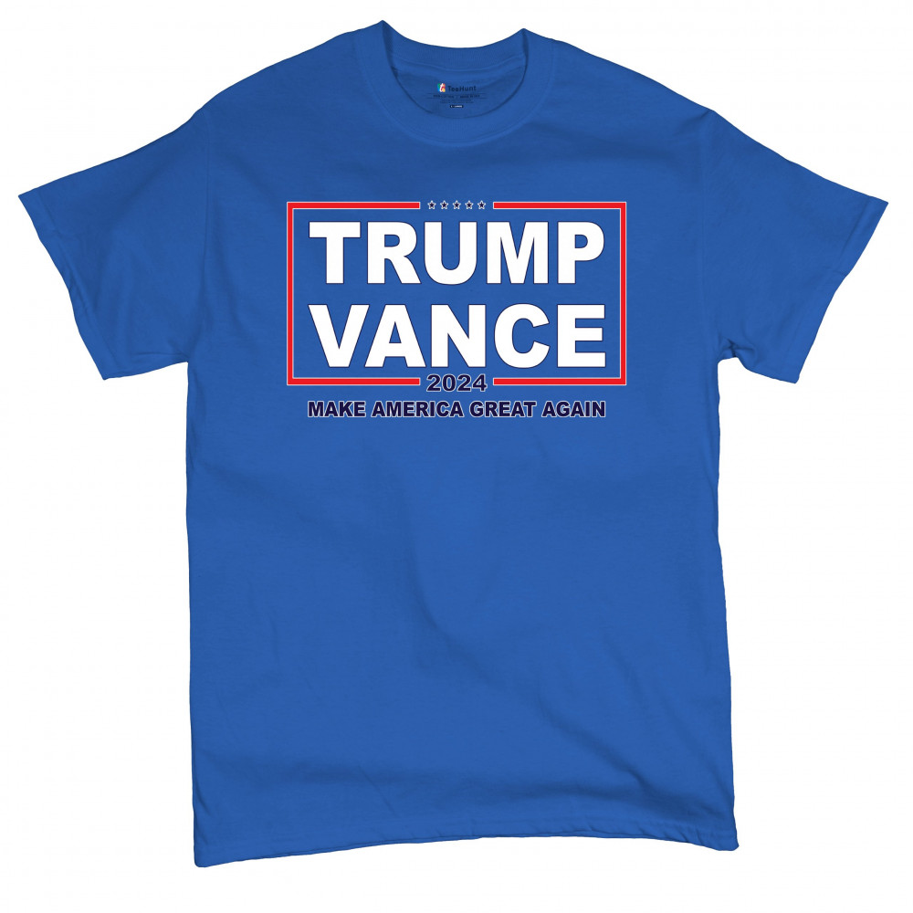 Showcase your support for the Trump-Vance 2024 campaign with this eye-catching design. Emblazoned with the "Make America Great Again" slogan, this artwork is perfect for conservative rallies, political gatherings, or simply expressing your political views. The striking red, white, and blue colors highlight your American pride and dedication to the conservative movement. Comfortable and stylish, this design is a great addition to any wardrobe, allowing you to stand out and make a statement wherever you go.