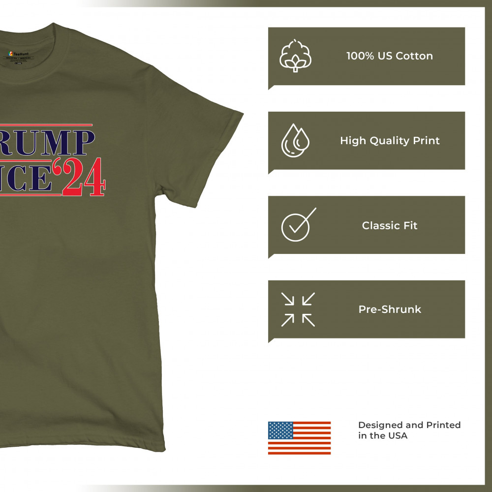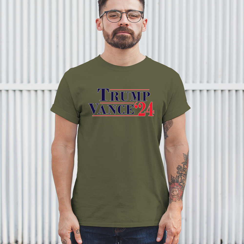 Show your support for Trump and Vance 2024 with this bold, patriotic design. Perfect for rallies and everyday wear. Join the movement!