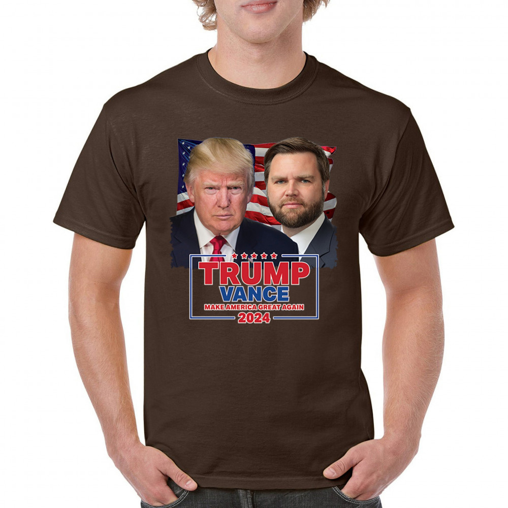 Show your support for Trump-Vance 2024 with this bold design featuring Trump and Vance against the American flag. Perfect for rallies and political events.