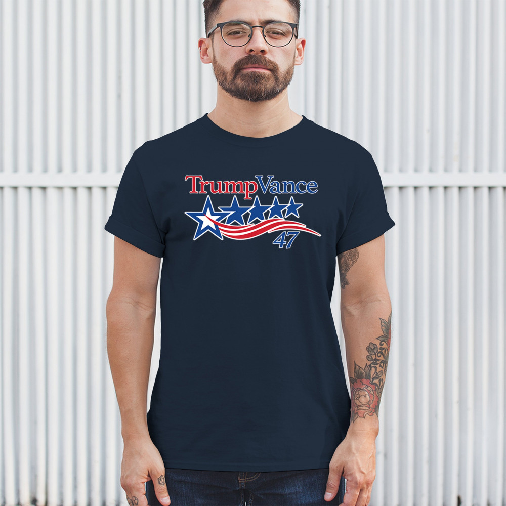 Celebrate patriotism and conservative strength with the "Trump Vance 47" design, a perfect tribute to the America First movement. This design features a bold representation of Donald J. Trump and J.D. Vance’s commitment to American values, proudly showcasing the Red Wave. For supporters who want to rally behind Republican ideals, this is the design to wear and share, symbolizing hope, unity, and victory for America's future.