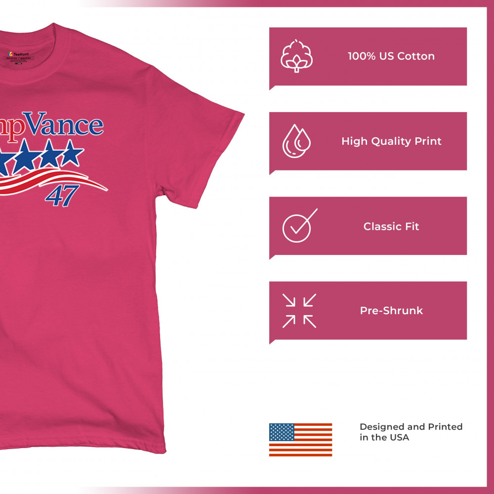 Celebrate patriotism and conservative strength with the "Trump Vance 47" design, a perfect tribute to the America First movement. This design features a bold representation of Donald J. Trump and J.D. Vance’s commitment to American values, proudly showcasing the Red Wave. For supporters who want to rally behind Republican ideals, this is the design to wear and share, symbolizing hope, unity, and victory for America's future.