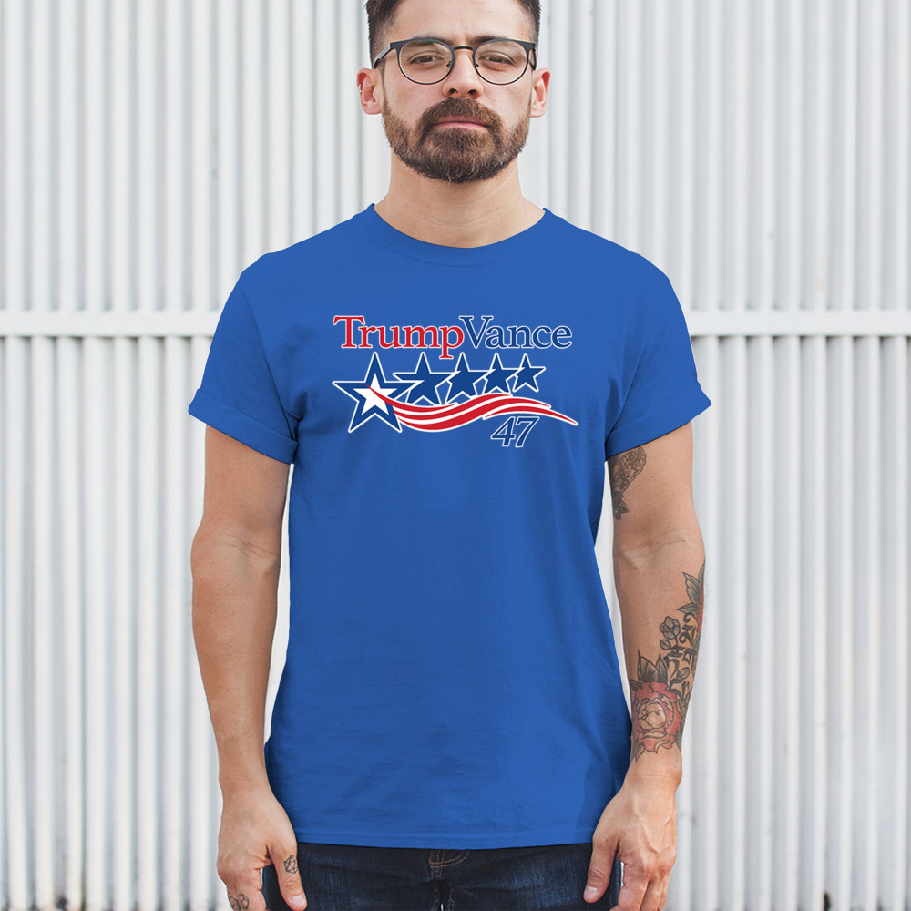 Celebrate patriotism and conservative strength with the "Trump Vance 47" design, a perfect tribute to the America First movement. This design features a bold representation of Donald J. Trump and J.D. Vance’s commitment to American values, proudly showcasing the Red Wave. For supporters who want to rally behind Republican ideals, this is the design to wear and share, symbolizing hope, unity, and victory for America's future.