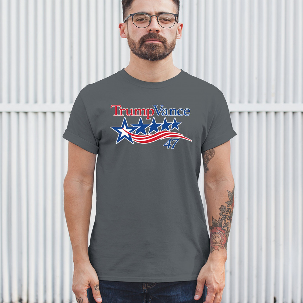 Celebrate patriotism and conservative strength with the "Trump Vance 47" design, a perfect tribute to the America First movement. This design features a bold representation of Donald J. Trump and J.D. Vance’s commitment to American values, proudly showcasing the Red Wave. For supporters who want to rally behind Republican ideals, this is the design to wear and share, symbolizing hope, unity, and victory for America's future.