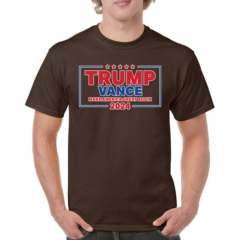 Show your support for Trump-Vance 2024 with this patriotic design featuring the American flag and bold slogan. Perfect for rallies and conservative events.