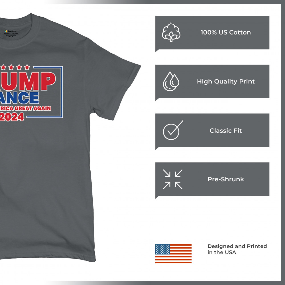 Express your support for the Trump-Vance 2024 campaign with this striking design that embodies American patriotism and conservative values. Featuring the American flag and the bold slogan "Trump Vance 2024," this design is perfect for rallies, political events, or daily wear. It’s a testament to your unwavering support for conservative ideals and the vision of making America great again. Join the movement and show your allegiance with this powerful and iconic design.