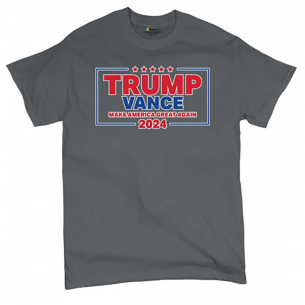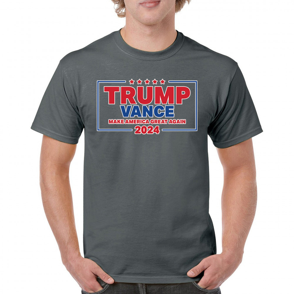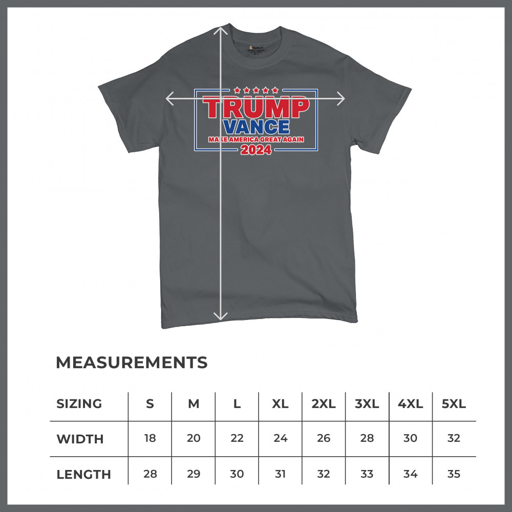 Show your support for Trump-Vance 2024 with this patriotic design featuring the American flag and bold slogan. Perfect for rallies and conservative events.