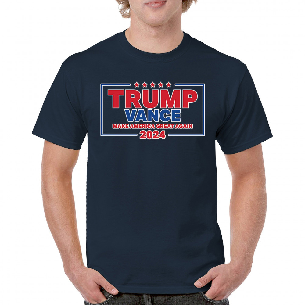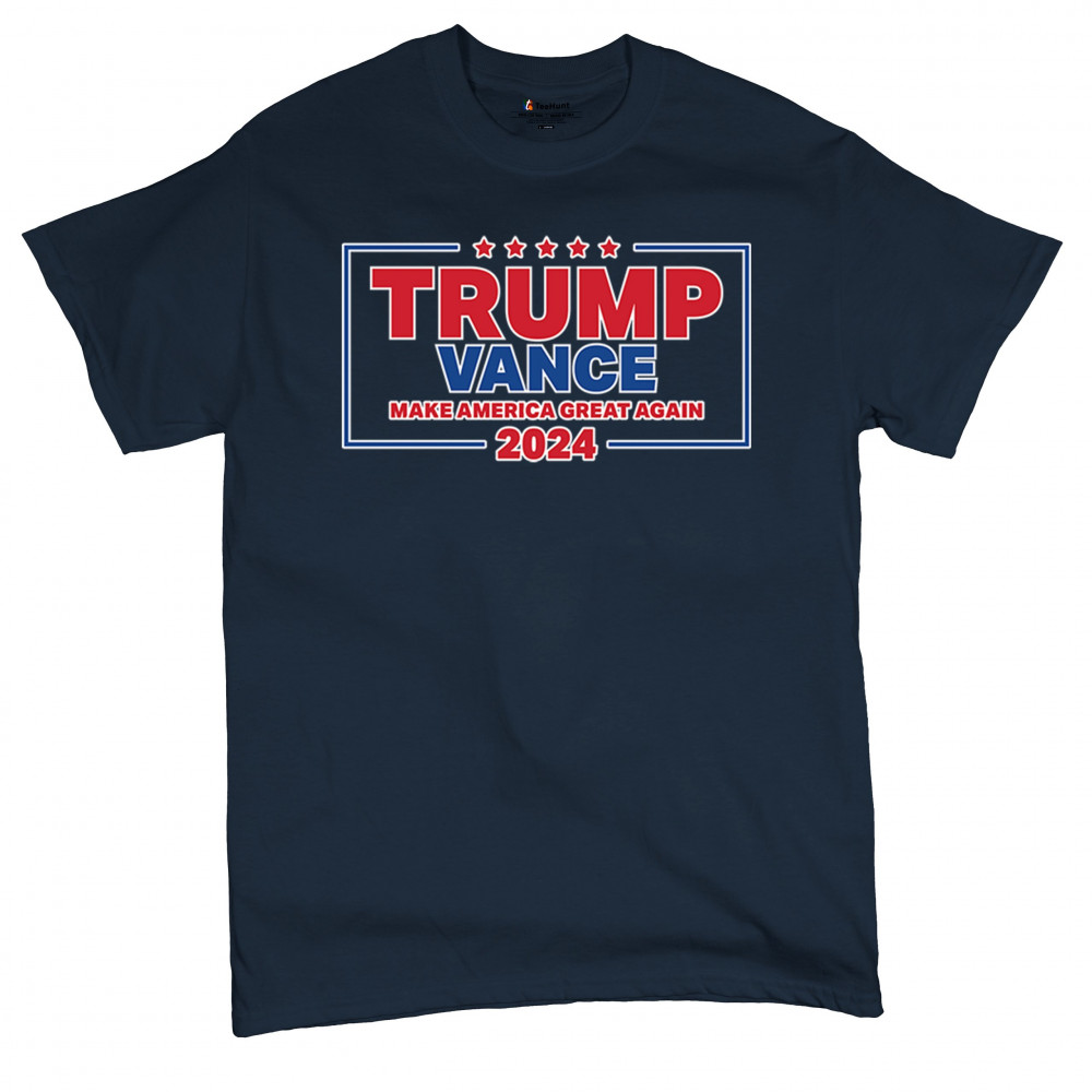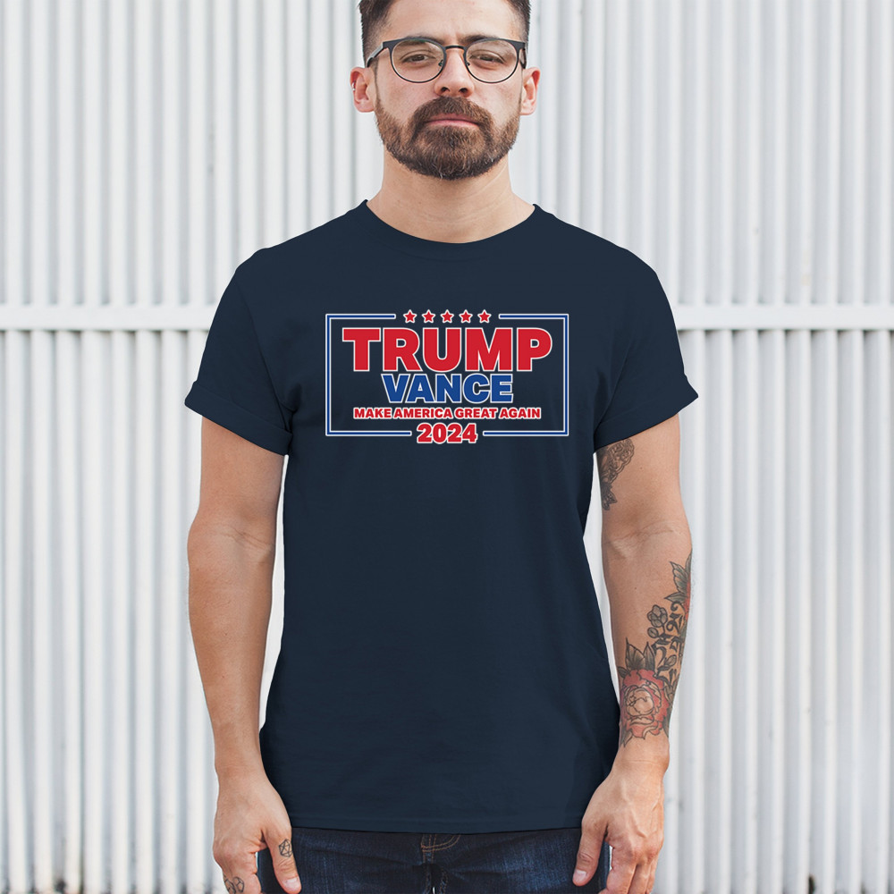 Show your support for Trump-Vance 2024 with this patriotic design featuring the American flag and bold slogan. Perfect for rallies and conservative events.