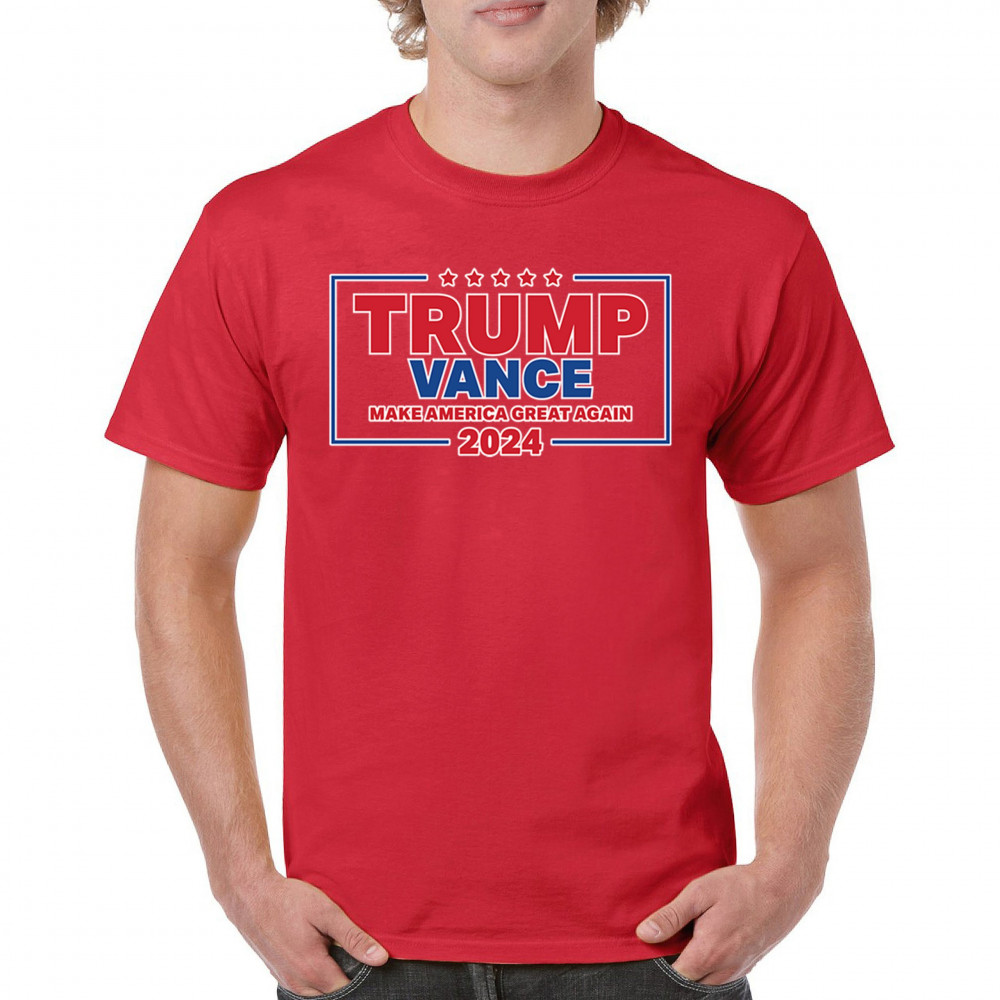 Show your support for Trump-Vance 2024 with this patriotic design featuring the American flag and bold slogan. Perfect for rallies and conservative events.