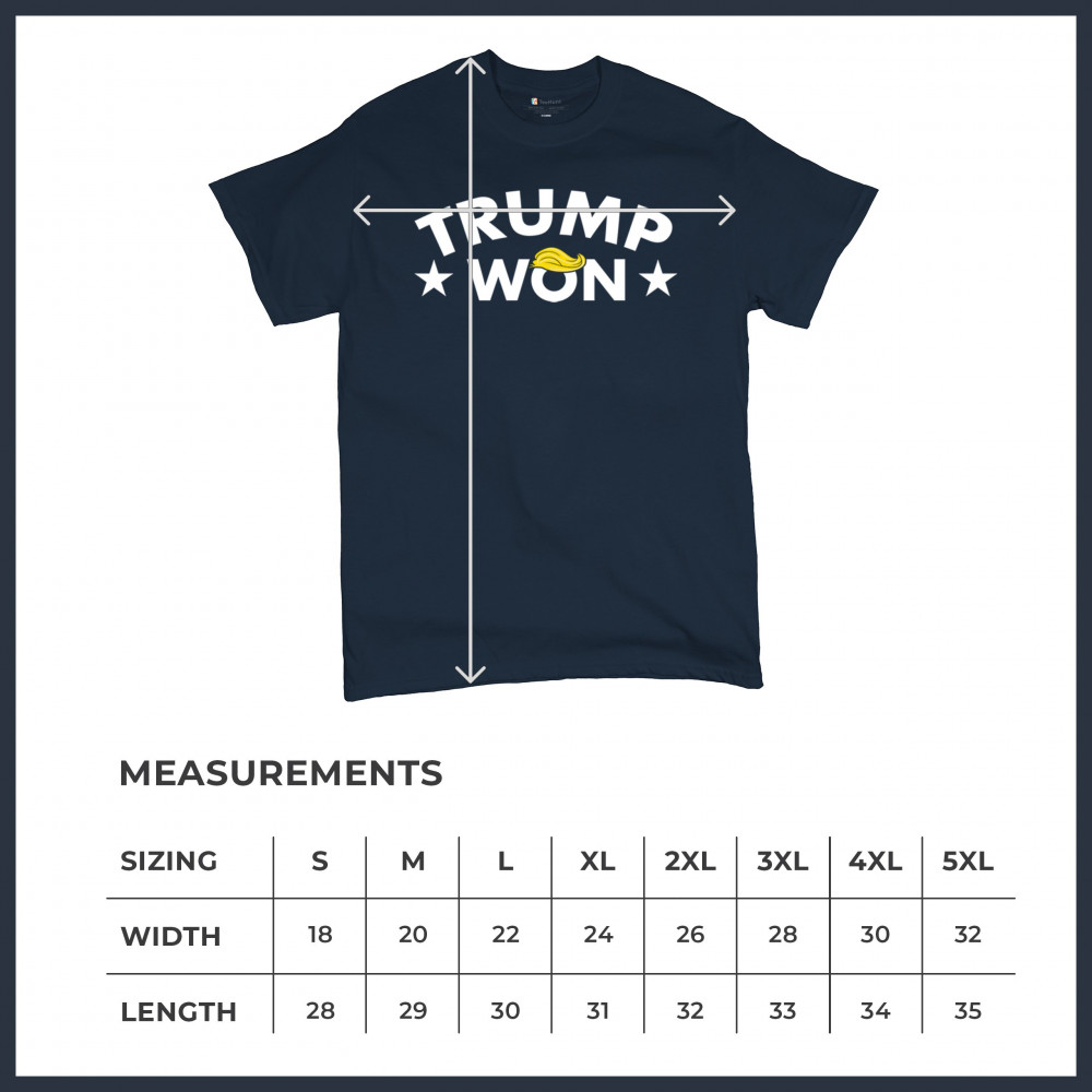 The "Trump Won" design boldly represents the spirit of victory, resilience, and unwavering support for America First principles. Ideal for patriots, Republicans, and supporters of Donald J. Trump, this statement graphic captures the momentum of the Red Wave and the people's mandate. Make your voice heard and show your dedication to the fight for freedom with this iconic design.