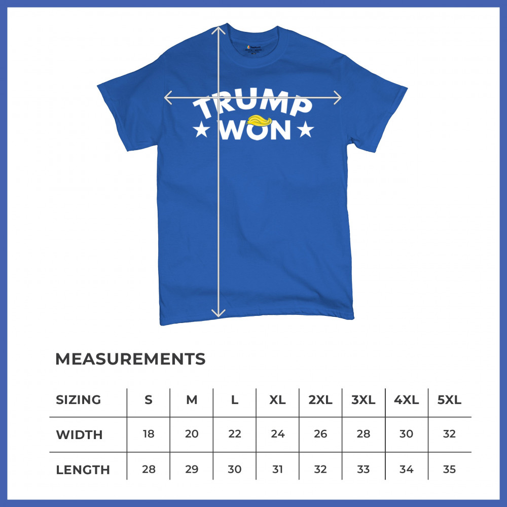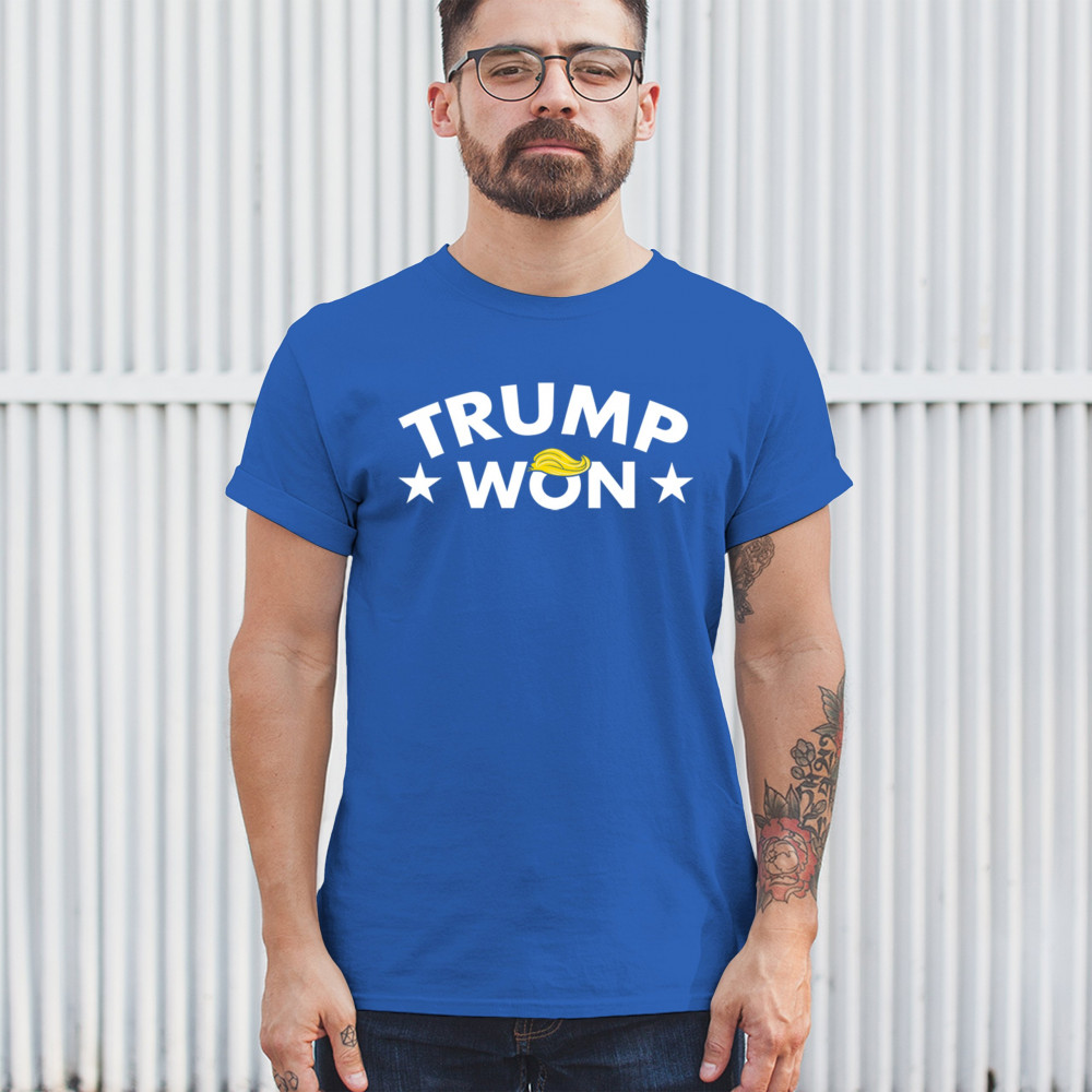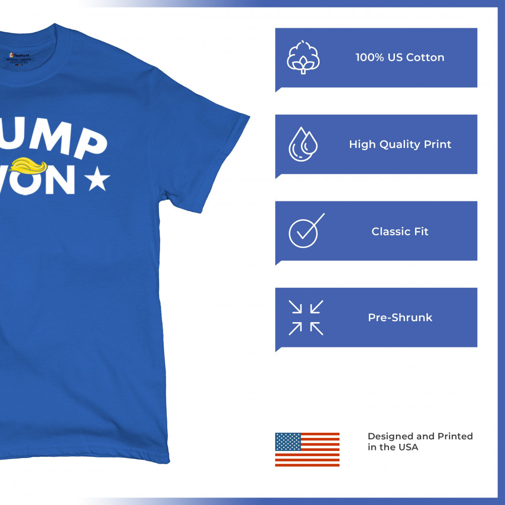 The "Trump Won" design boldly represents the spirit of victory, resilience, and unwavering support for America First principles. Ideal for patriots, Republicans, and supporters of Donald J. Trump, this statement graphic captures the momentum of the Red Wave and the people's mandate. Make your voice heard and show your dedication to the fight for freedom with this iconic design.