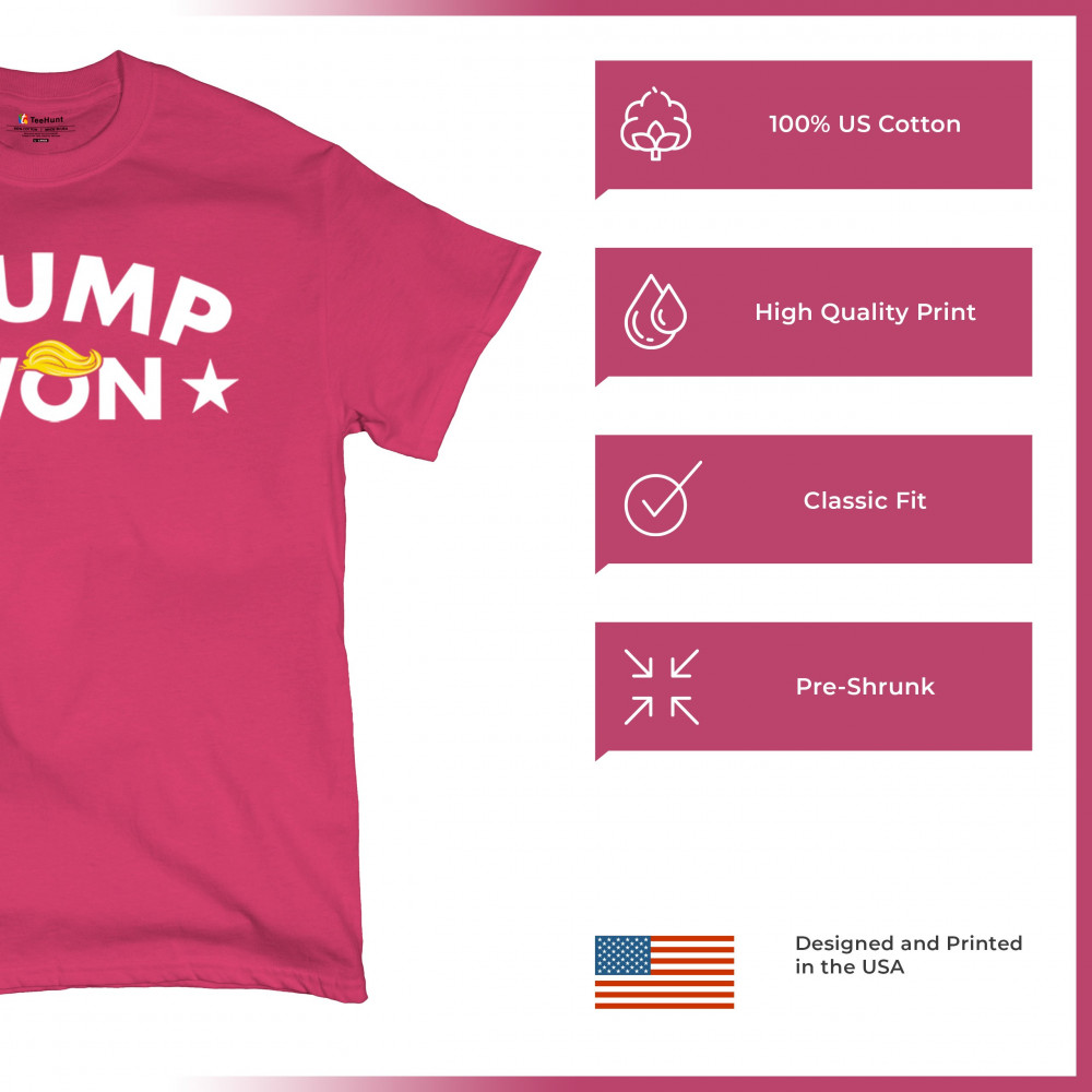 Boldly celebrate America First with the "Trump Won" design! Perfect for patriots and Republicans backing Donald J. Trump and the Red Wave movement.