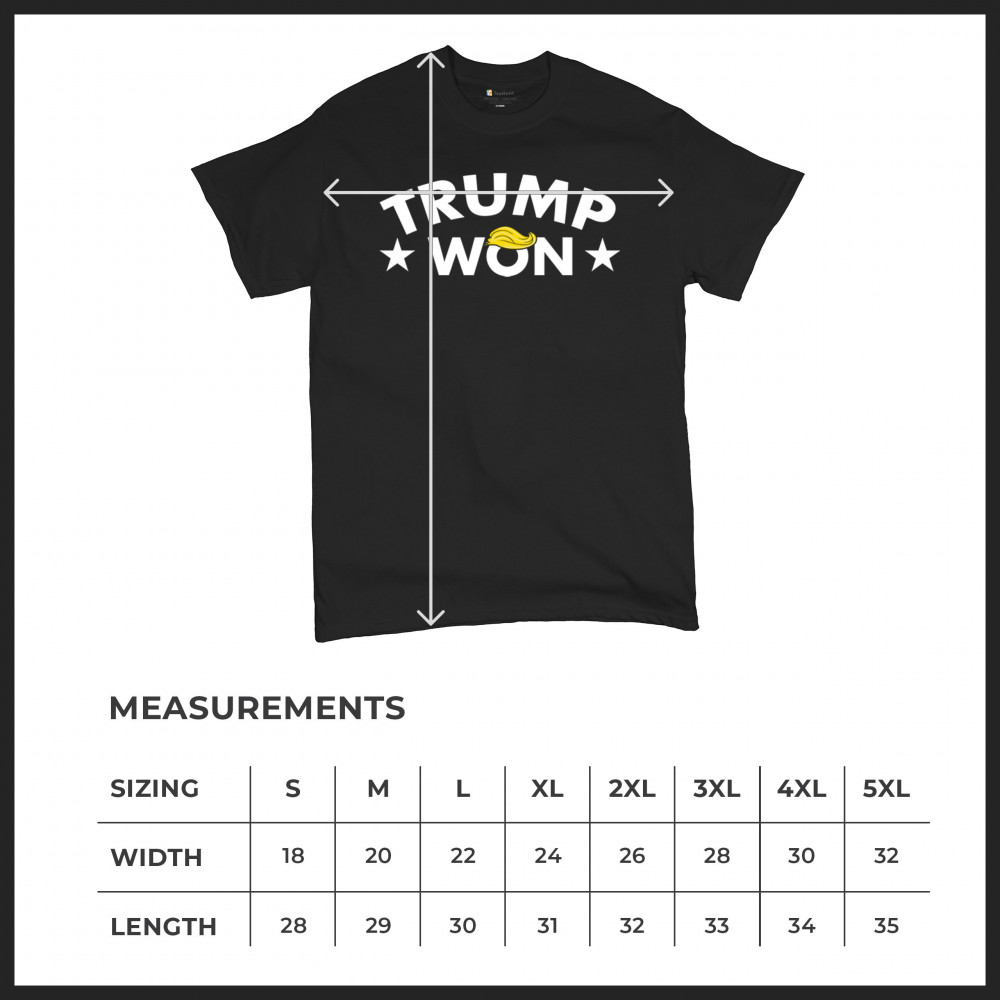 The "Trump Won" design boldly represents the spirit of victory, resilience, and unwavering support for America First principles. Ideal for patriots, Republicans, and supporters of Donald J. Trump, this statement graphic captures the momentum of the Red Wave and the people's mandate. Make your voice heard and show your dedication to the fight for freedom with this iconic design.