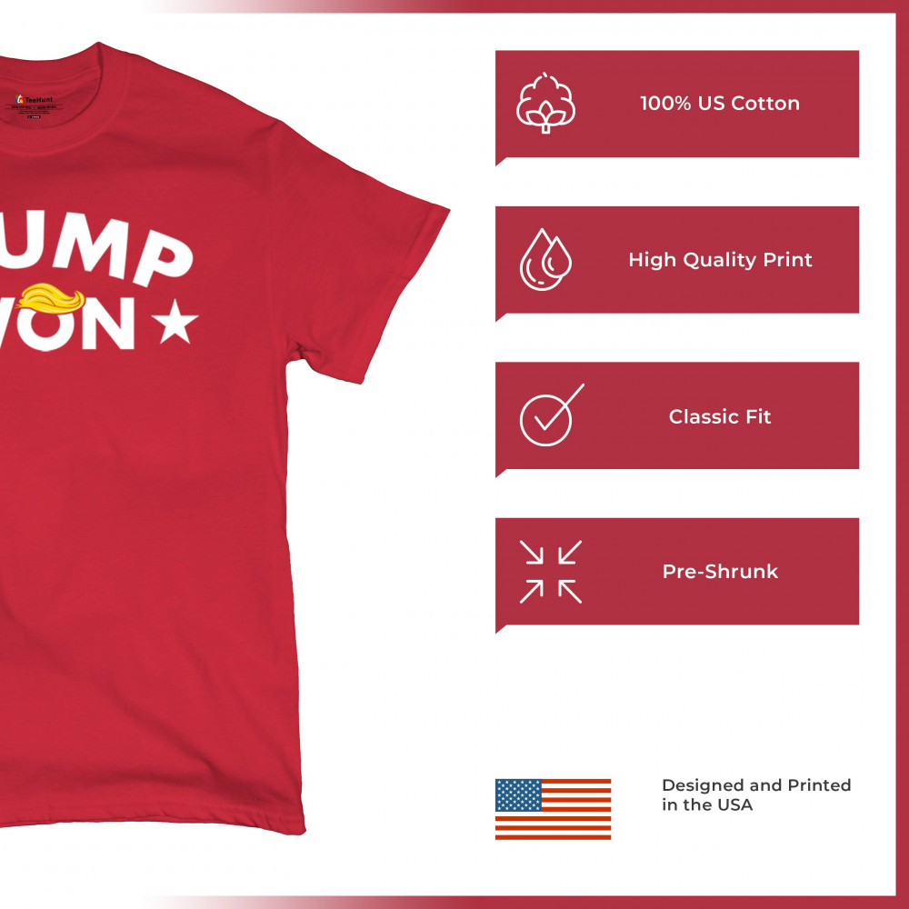 Boldly celebrate America First with the "Trump Won" design! Perfect for patriots and Republicans backing Donald J. Trump and the Red Wave movement.