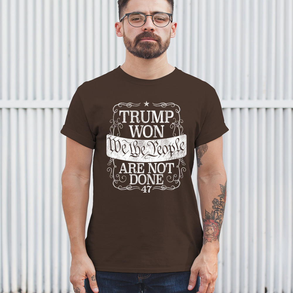 Celebrate the power of "We the People" with this "Trump Won" design, a rallying cry for those who support Donald J. Trump and the Republican movement. Featuring bold typography and a message of resilience, it embodies the conservative fight for victory and unity. Perfect for events, gifts, or everyday wear, it’s a powerful statement of faith in the party of common sense and the people's mandate.