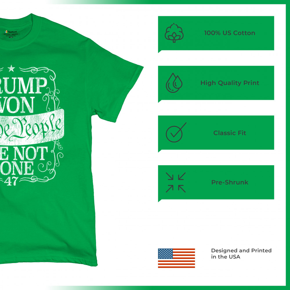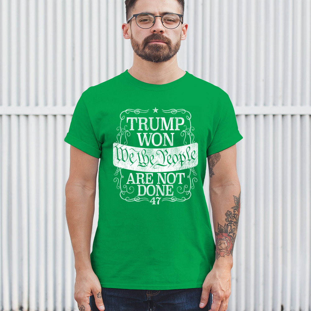 Trump Won design celebrating conservative victory, "We the People," and unity. Perfect for patriots and Republican supporters of the Red Wave.