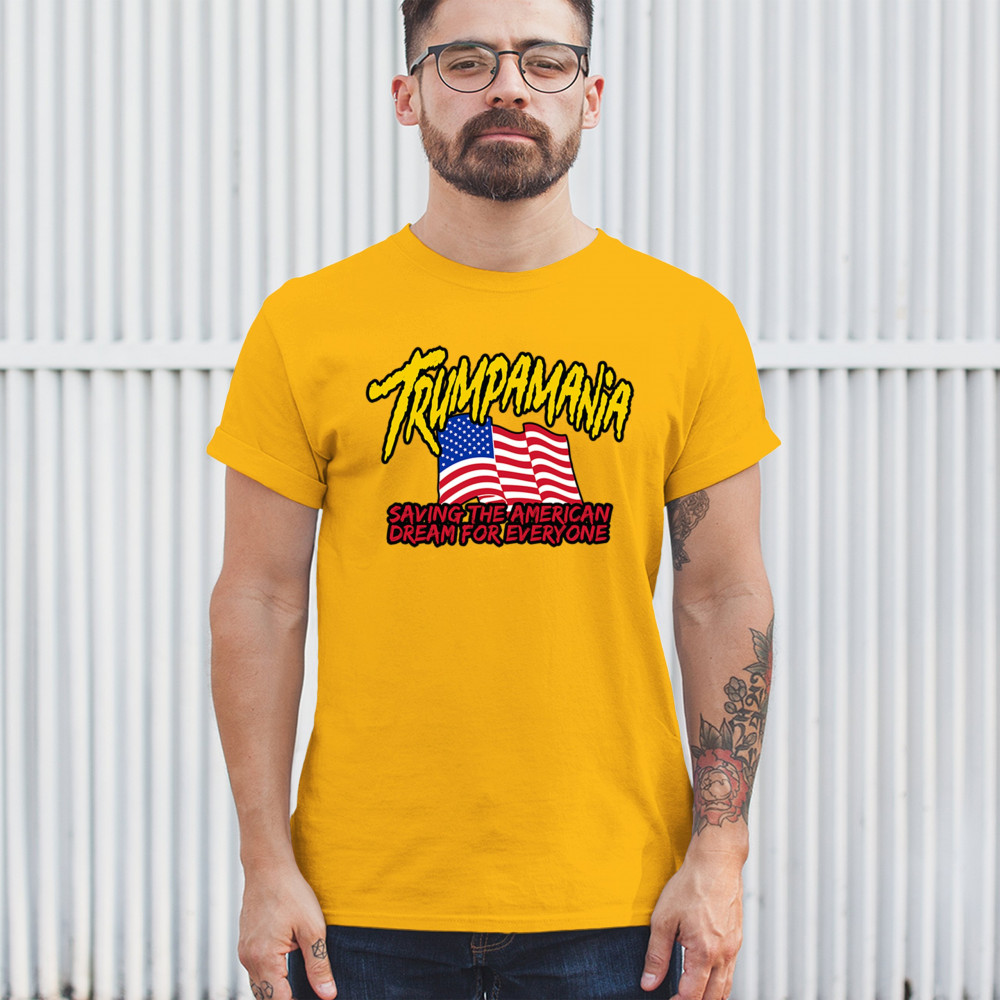 Celebrate the American dream with this powerful "Trumpamania" design. Perfect for rallies and beyond, this design captures the essence of conservatism and the fight for freedom. It’s a testament to the unstoppable spirit of those who trust in God and reject government overreach. With an American flag proudly displayed, this design aligns with the values of victory, rebellion, and unwavering support for Trump.