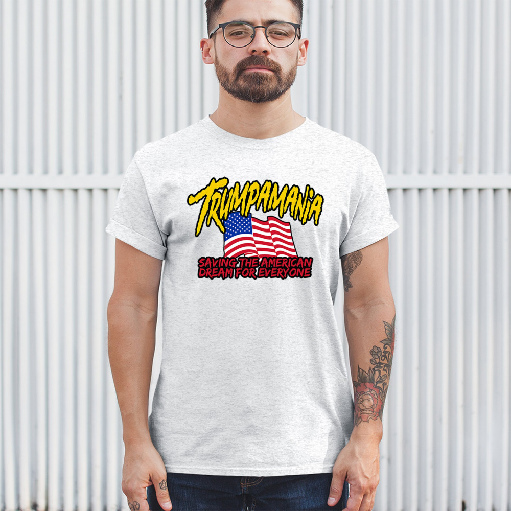 Celebrate the American dream with this powerful "Trumpamania" design. Perfect for rallies and beyond, this design captures the essence of conservatism and the fight for freedom. It’s a testament to the unstoppable spirit of those who trust in God and reject government overreach. With an American flag proudly displayed, this design aligns with the values of victory, rebellion, and unwavering support for Trump.