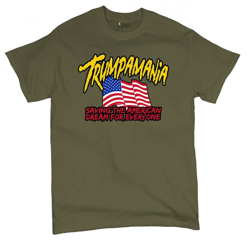 Show your patriotic pride with the "Trumpamania" design. Perfect for rallies, it embodies conservatism, trust in God, and the fight for America.