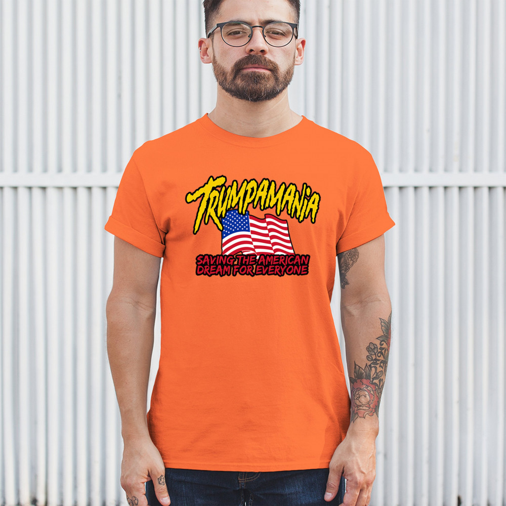 Celebrate the American dream with this powerful "Trumpamania" design. Perfect for rallies and beyond, this design captures the essence of conservatism and the fight for freedom. It’s a testament to the unstoppable spirit of those who trust in God and reject government overreach. With an American flag proudly displayed, this design aligns with the values of victory, rebellion, and unwavering support for Trump.