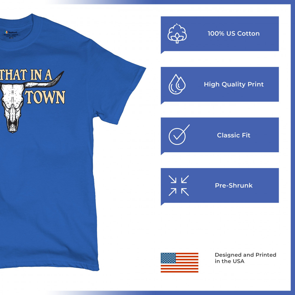 This design boldly proclaims "Try That in a SMALL TOWN," set against the backdrop of a stark cattle skull—a symbol deeply rooted in southern heritage and the undying American spirit. It's a tribute to the small-town sheriffs, the unwritten laws of backbone and duty, and the patriotic fervor that runs through the country's veins. Whether you're a motorcycle enthusiast, a Republican, or simply a connoisseur of all things vintage, this piece is a testament to enduring strength and local pride.