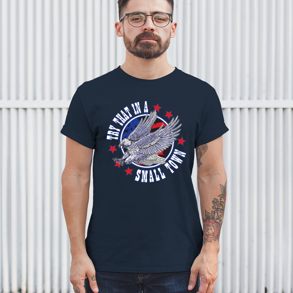 Stand with the pride of small-town America with this eagle design, a nod to patriotic strength and the Republican backbone.