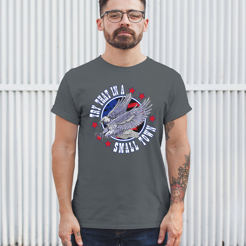 Stand with the pride of small-town America with this eagle design, a nod to patriotic strength and the Republican backbone.