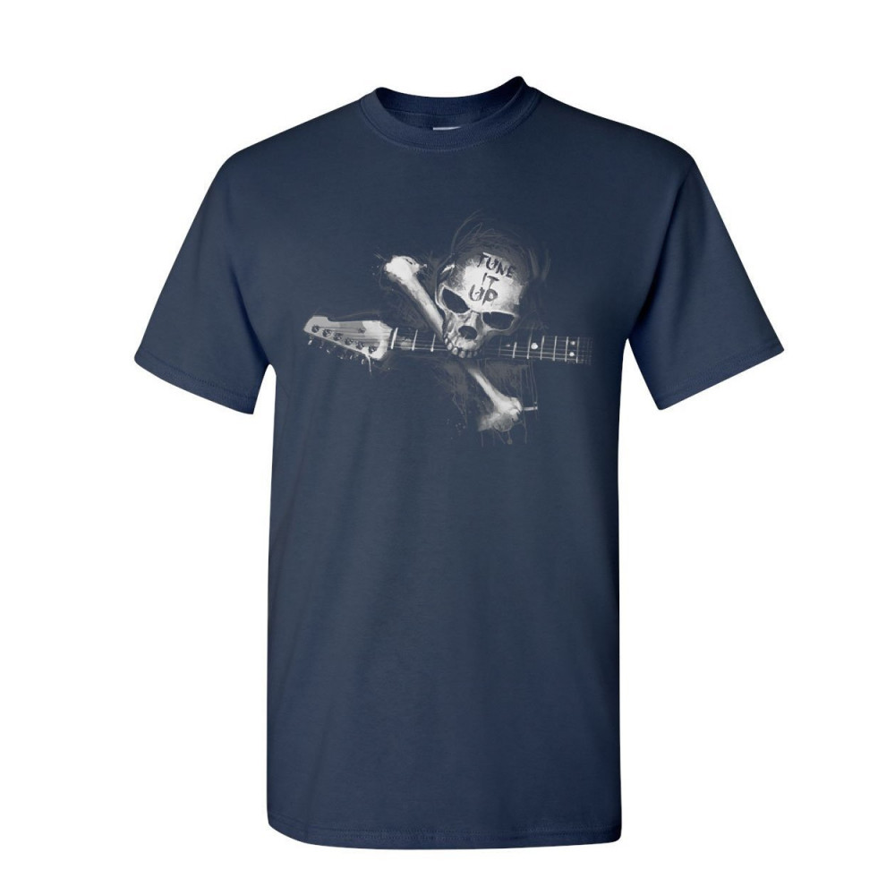 TUNE IT UP MUSIC t-shirt skulls guitar death metal hard rock mens tee shirt navy blue