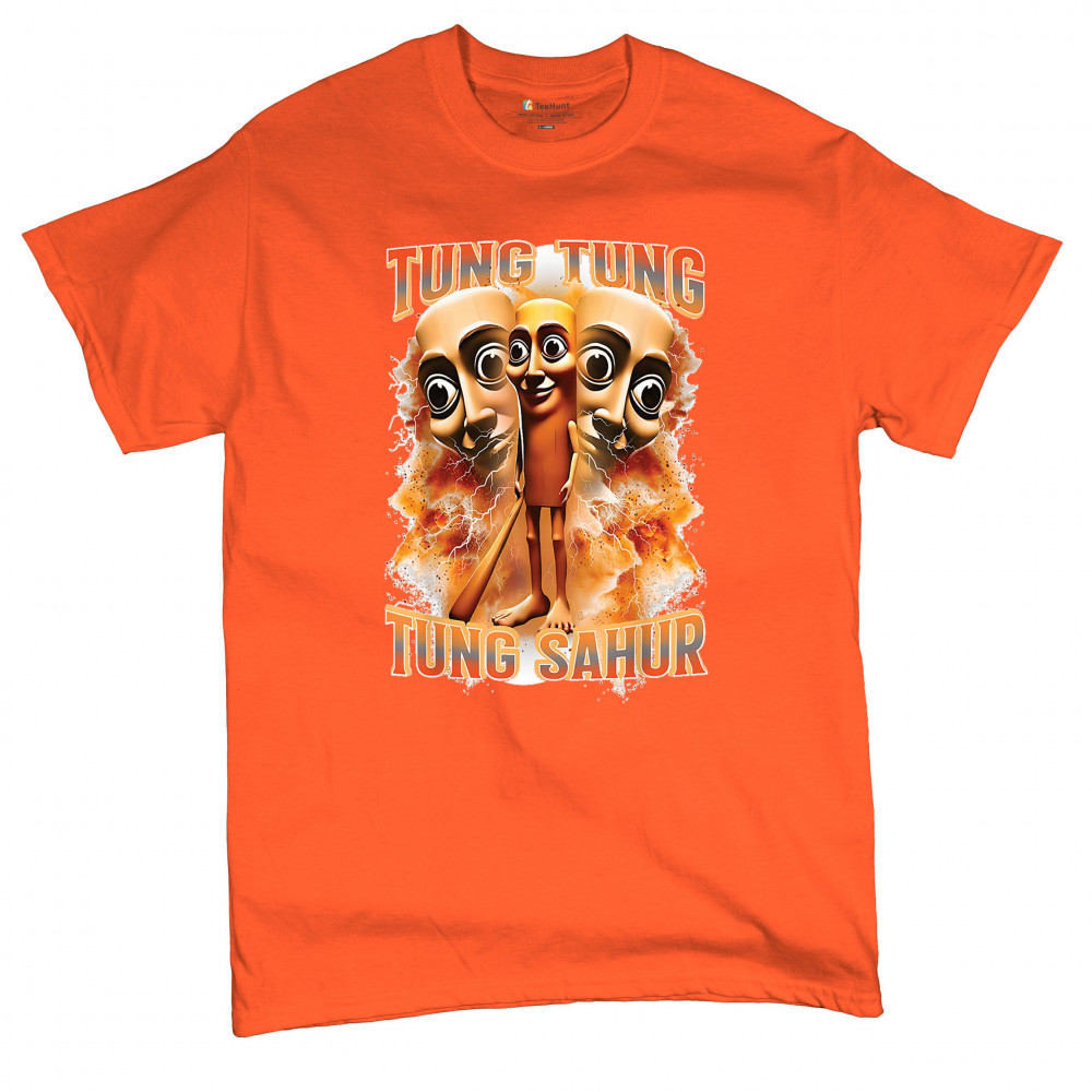 Brace yourself for pure meme insanity with the Tung Tung Tung Sahur shirt—a cursed-core fever dream built from TikTok chaos and Gen Z humor. This design blends internet meme culture, ironic fashion, brainrot visuals, and Gen Alpha absurdity. Perfect for those who wear memes, laugh at chaos, and live for viral trends.