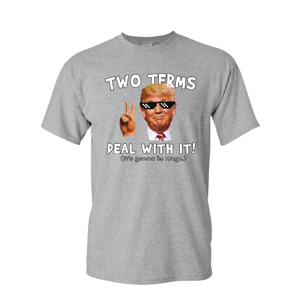 TWO TERMS DEAL WITH IT t-shirt donald trump troll meme maga 2020 mens tee shirt sport gray