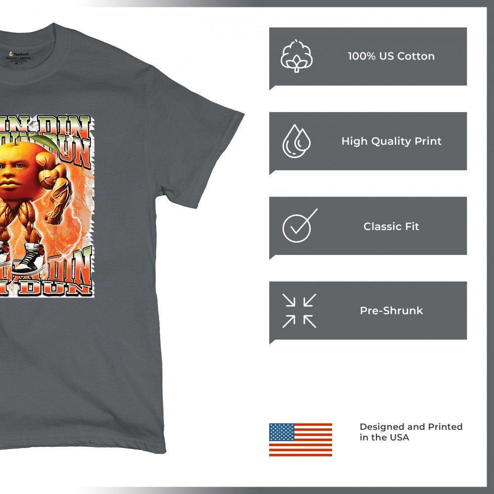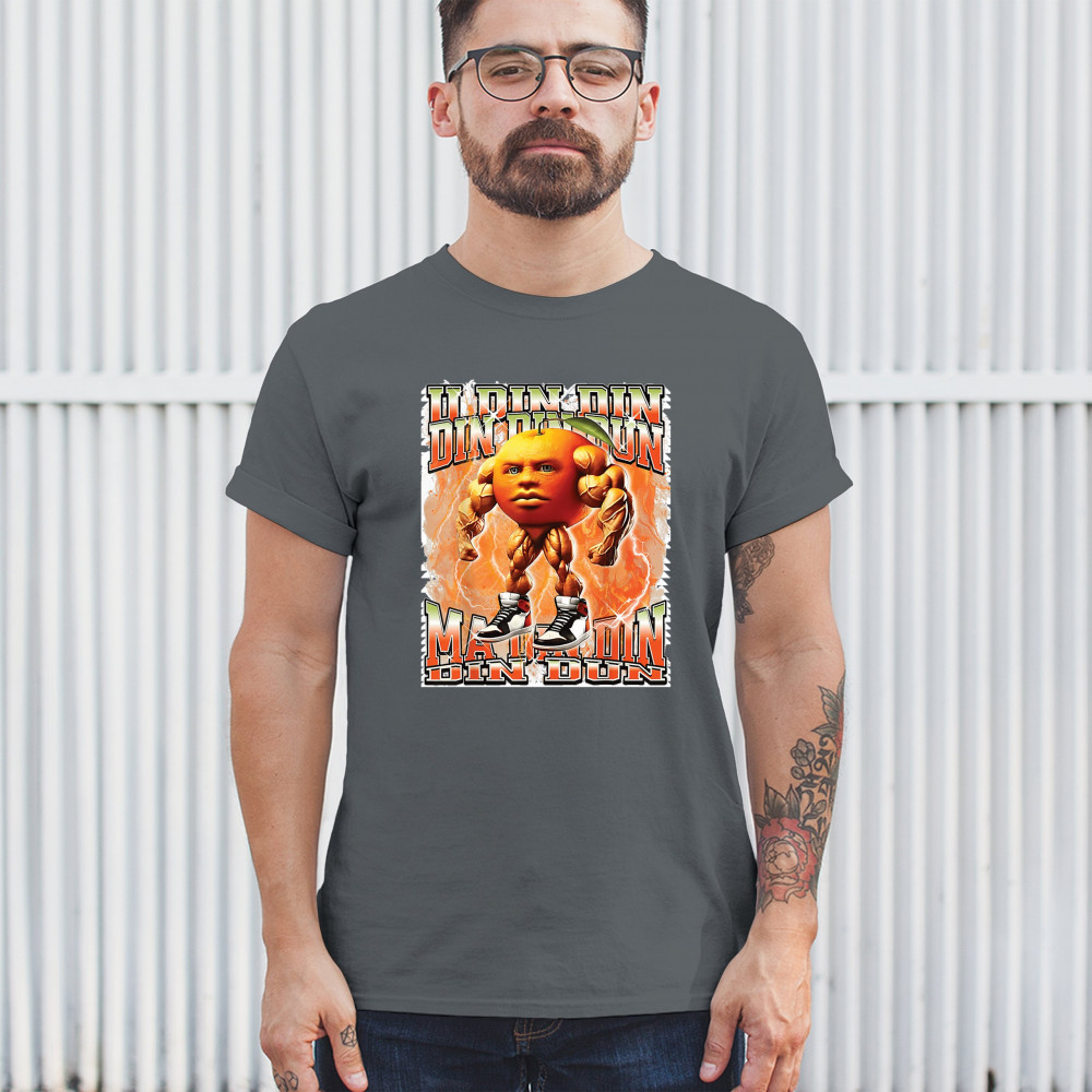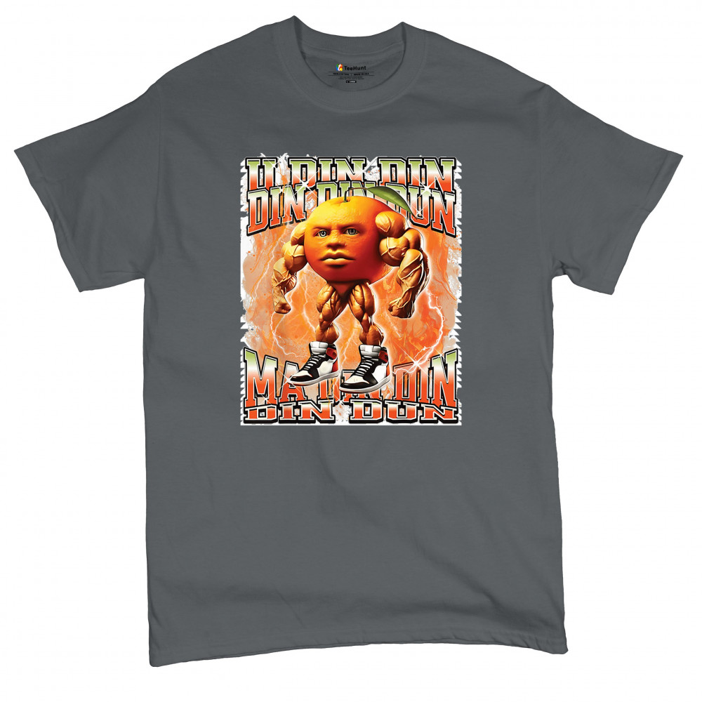 Meet U Din Din Din Din Dun Ma Din Din Din Dun—a jacked-up citrus monstrosity marching straight out of brainrot hell. This design fuses cursed fruit humor, muscle-core absurdity, weirdcore meme style, and TikTok chaos into one deranged fashion statement. Built for meme heads, gym rats with irony, and Gen Z absurdists.