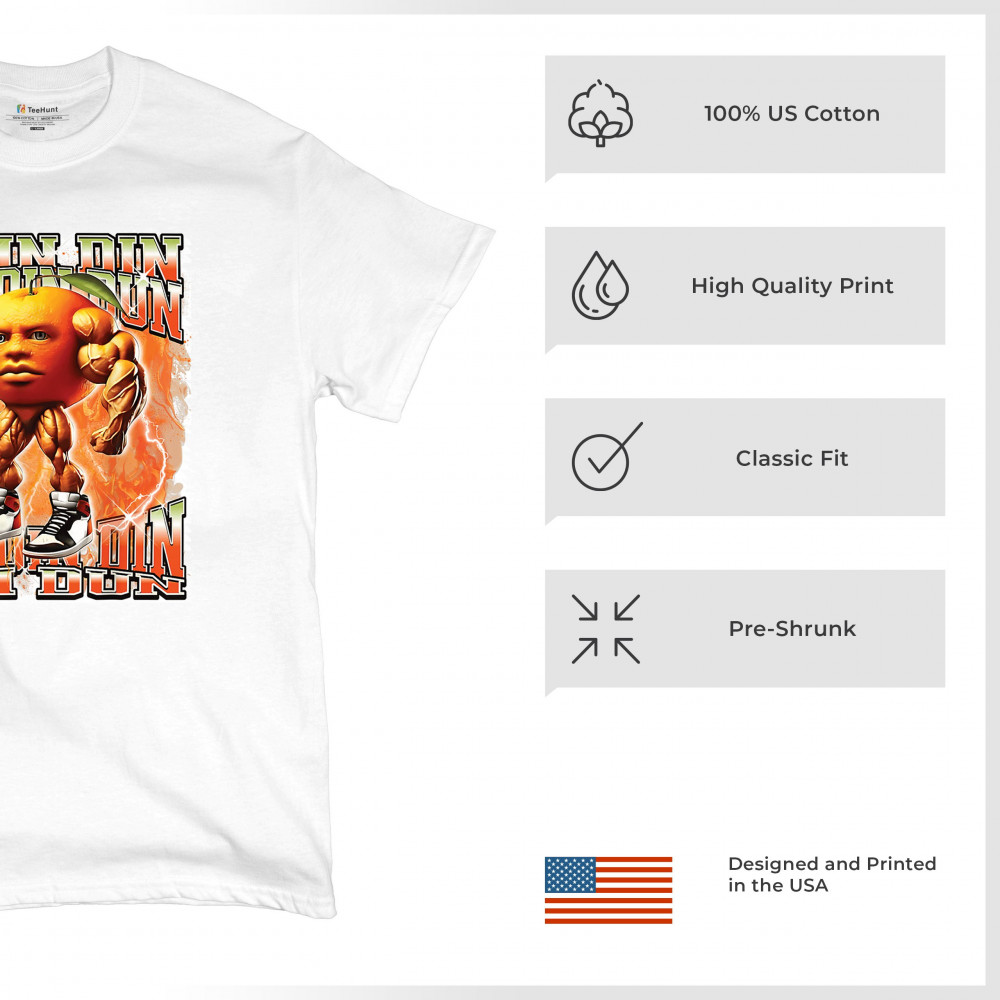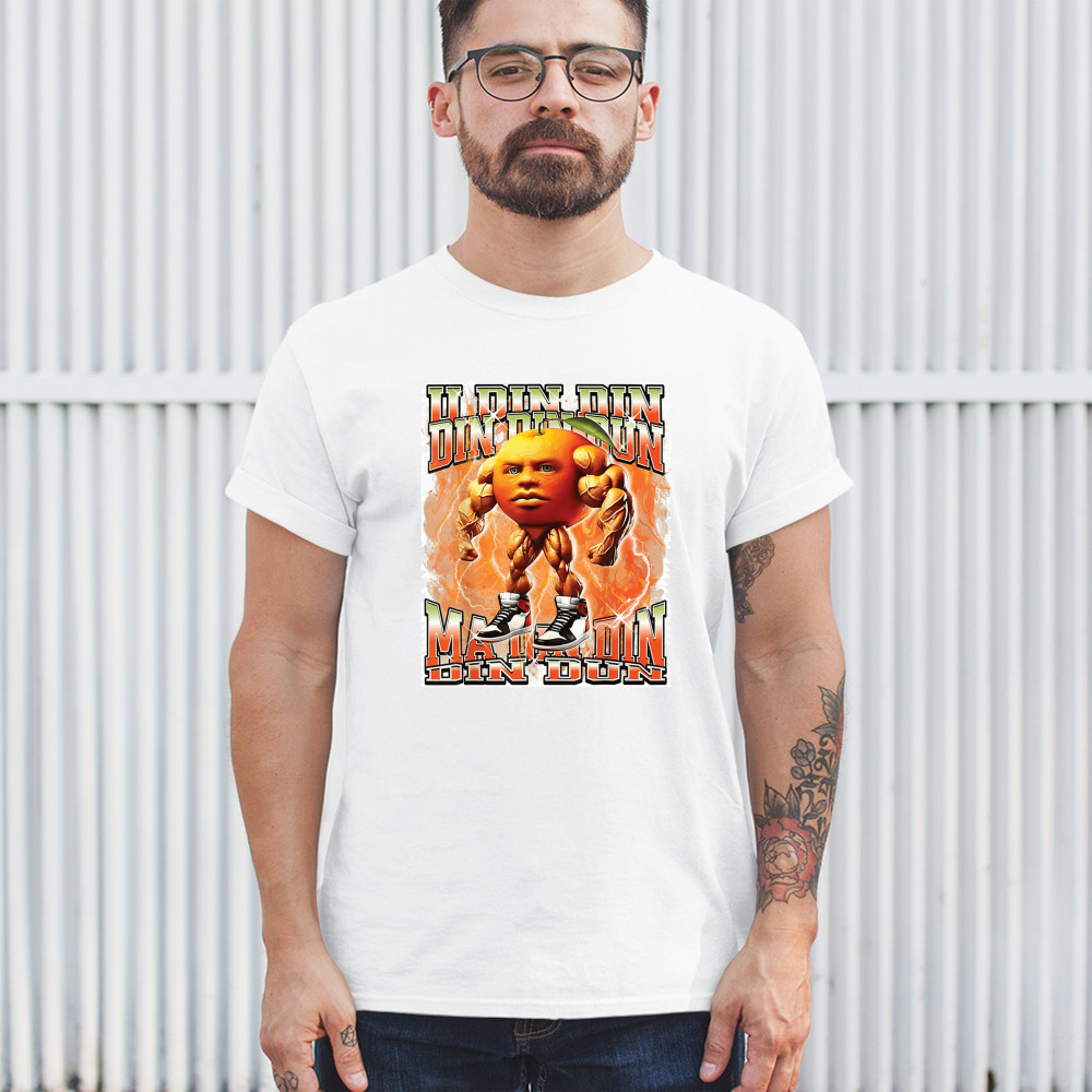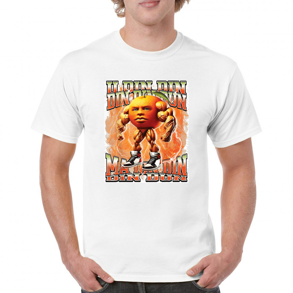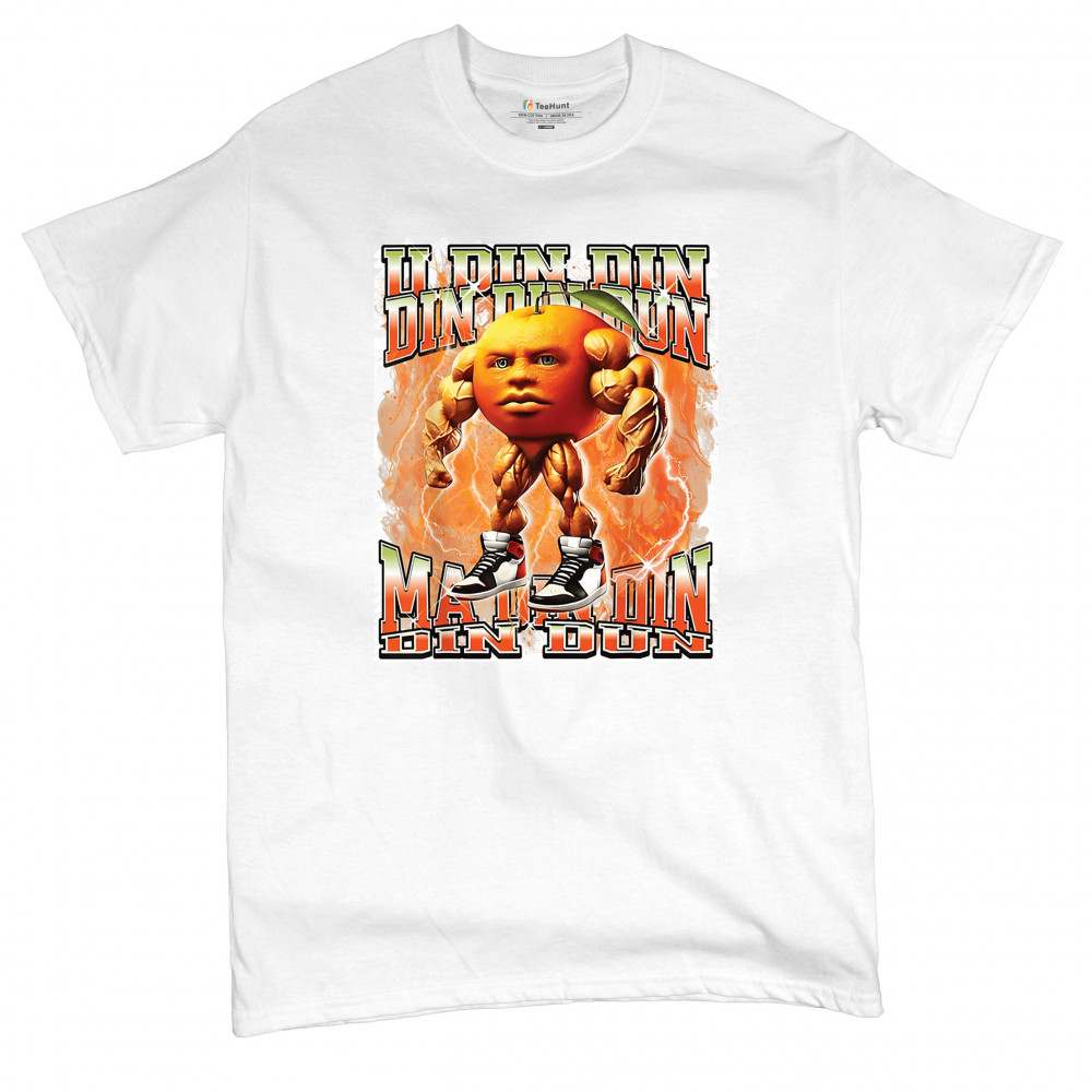 Meet U Din Din Din Din Dun Ma Din Din Din Dun—a jacked-up citrus monstrosity marching straight out of brainrot hell. This design fuses cursed fruit humor, muscle-core absurdity, weirdcore meme style, and TikTok chaos into one deranged fashion statement. Built for meme heads, gym rats with irony, and Gen Z absurdists.