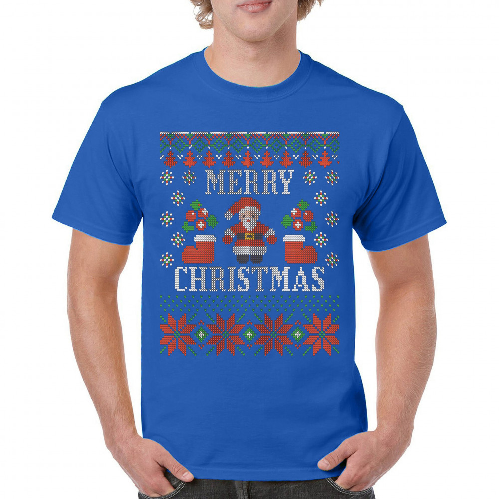 UGLY SWEATER SANTA CLAUS t-shirt let it snow christmas jingle bells men's tee royal blue