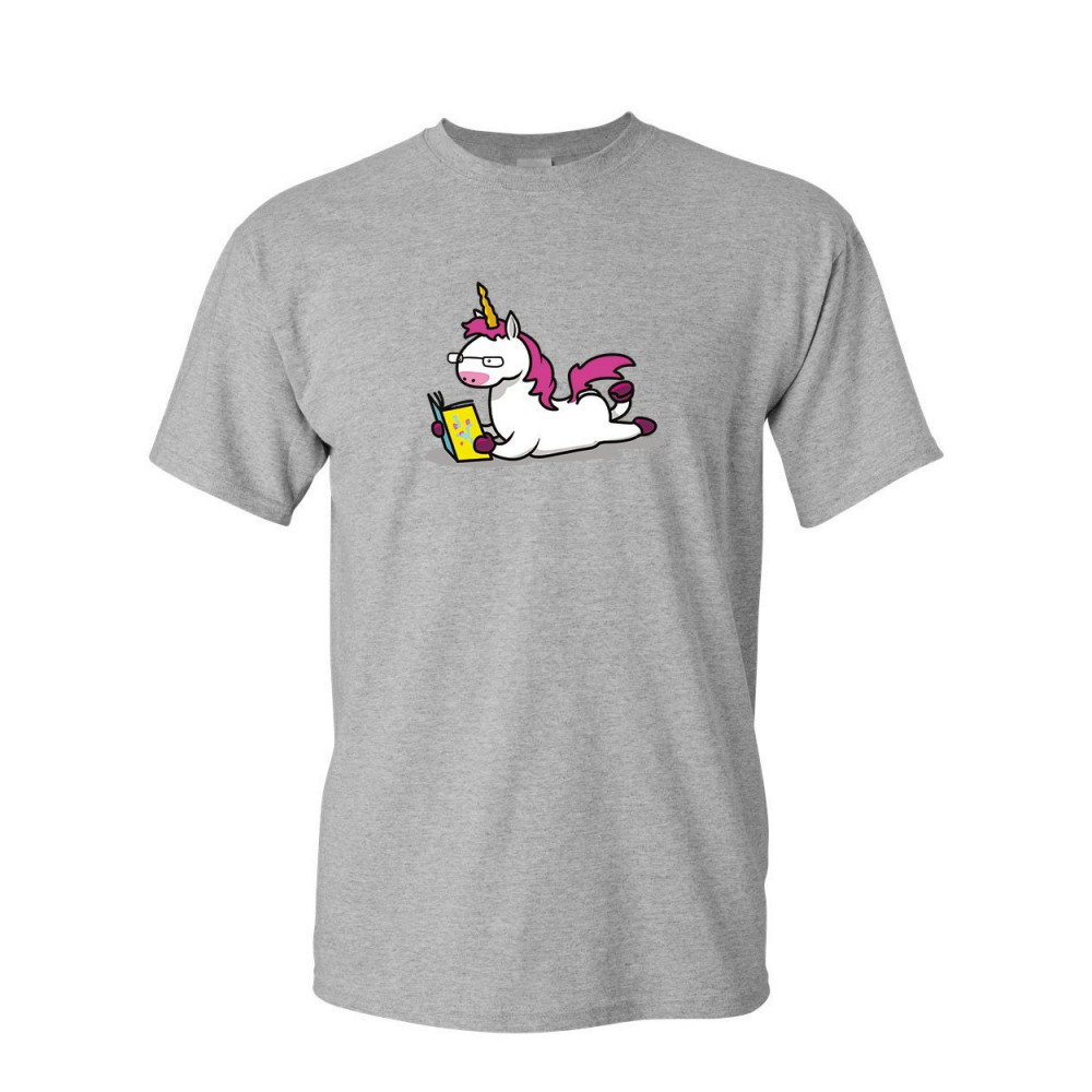 UNICORN BOOKWORM t-shirt funny college student nerd geek study mens tee shirt sport gray