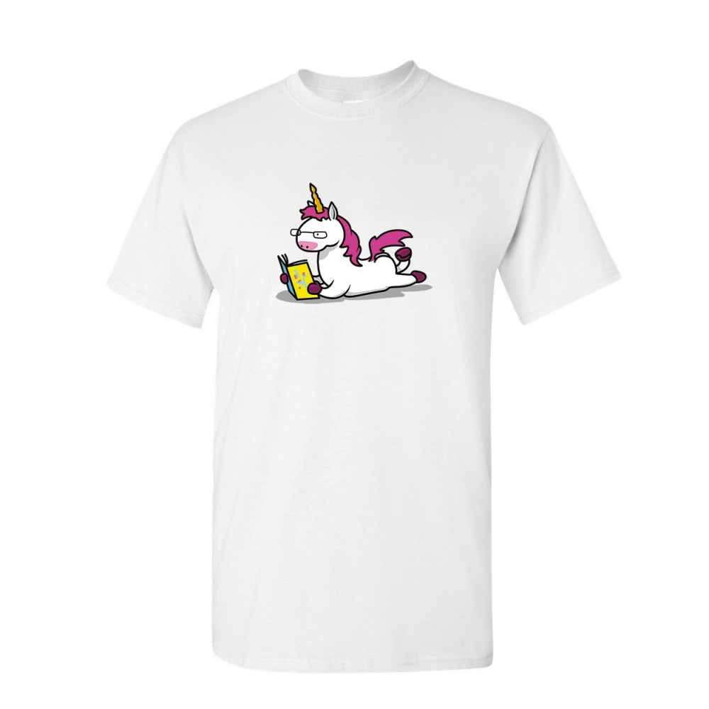 UNICORN BOOKWORM t-shirt funny college student nerd geek study mens tee shirt white