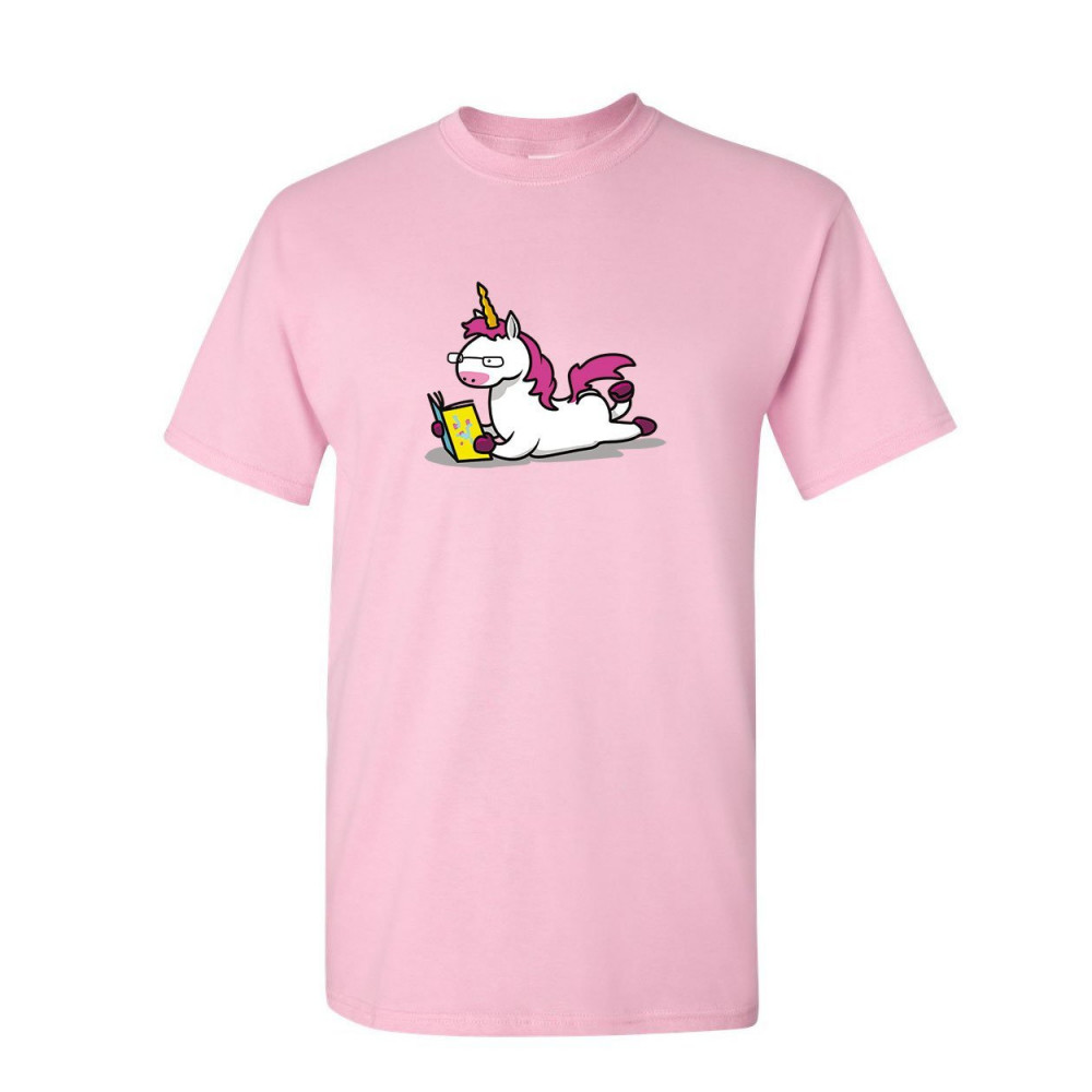 UNICORN BOOKWORM t-shirt funny college student nerd geek study mens tee shirt light pink